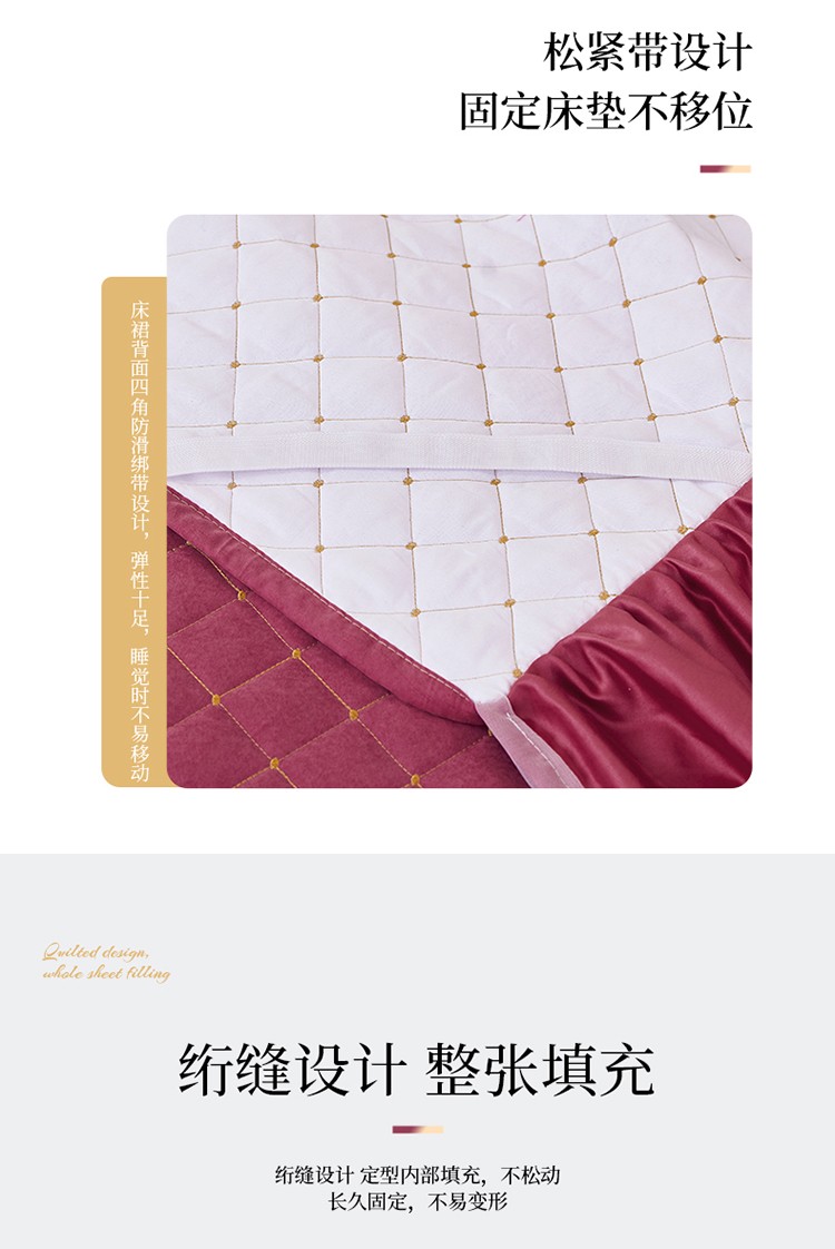 (总)屹成家纺2025新款水晶绒夹棉绗缝床裙四件套(塞纳河畔)四件套起售价不低于230元,大红,豆沙,翡翠绿,粉玉,橄榄绿,蔚蓝,银灰