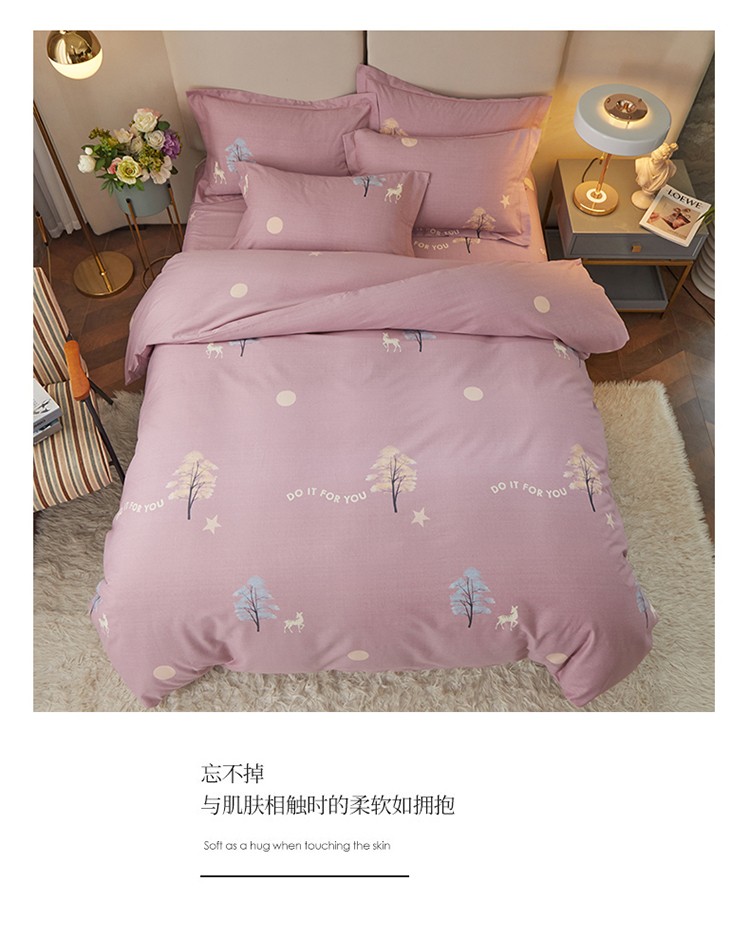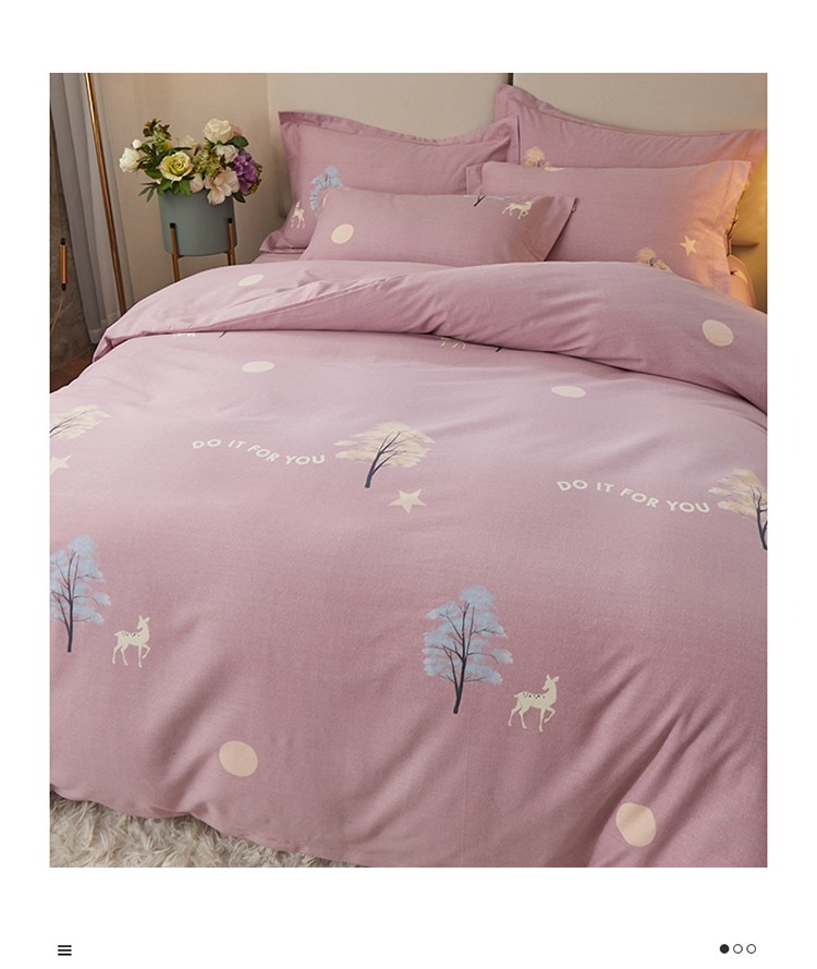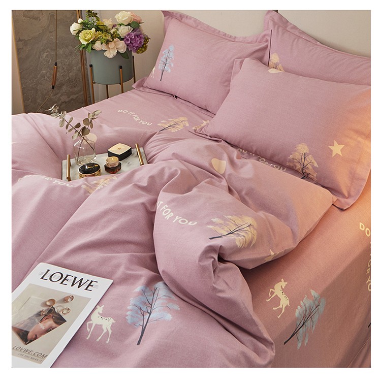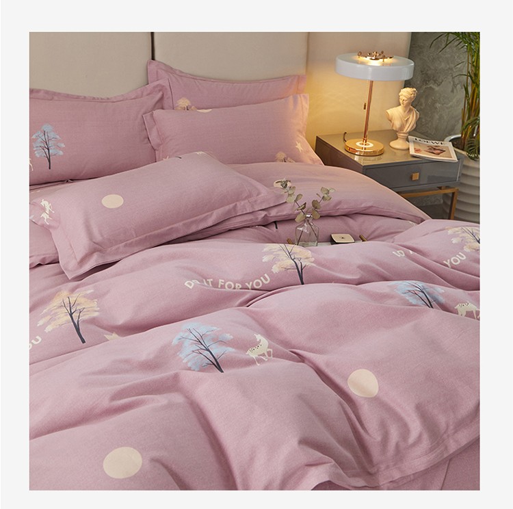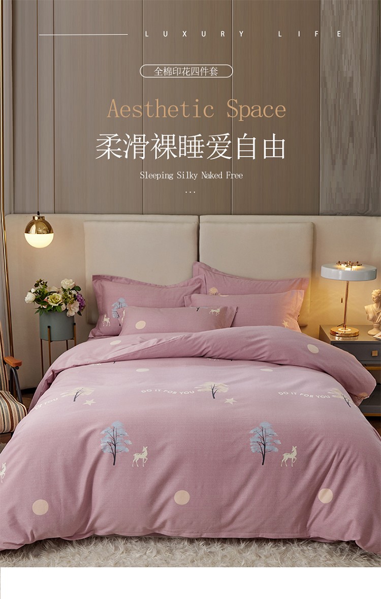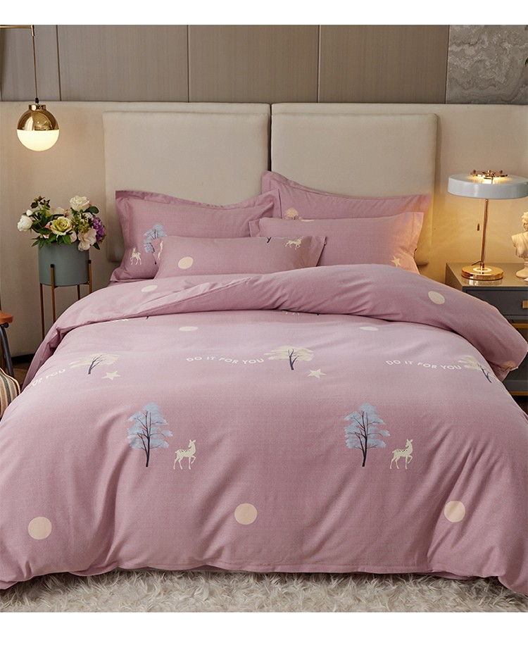金纱玉纺 2022新款全棉印花加厚磨毛四件套 麋鹿森林-豆沙