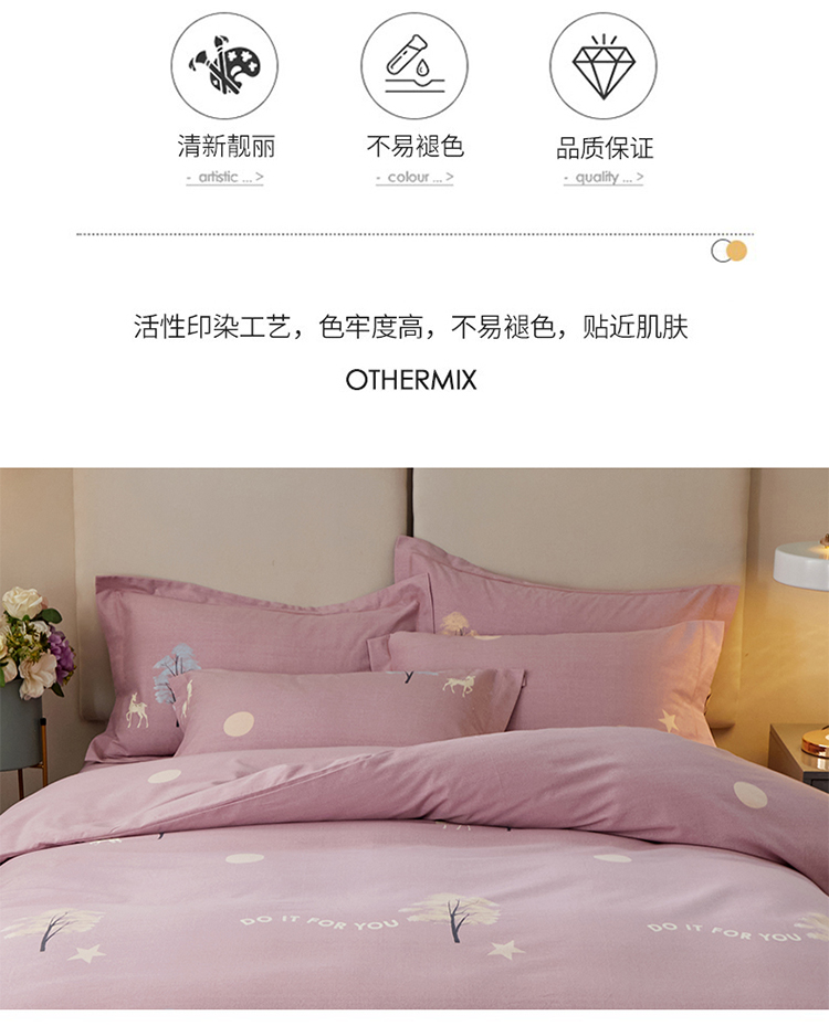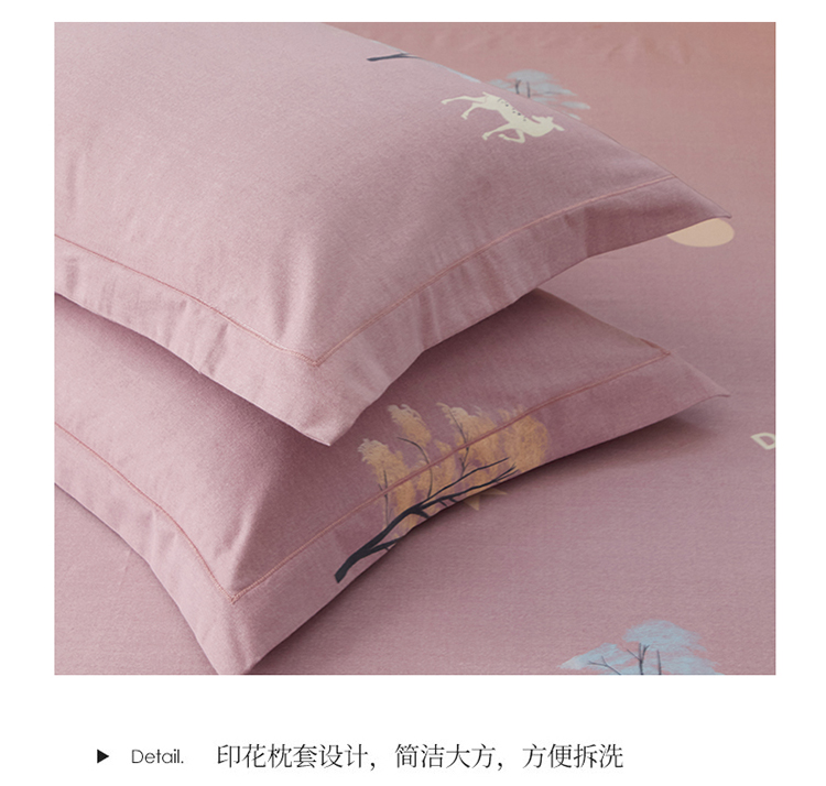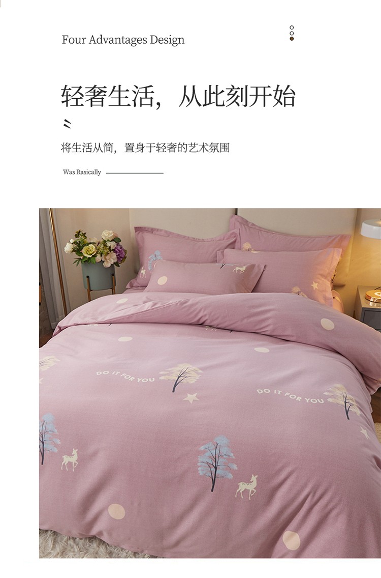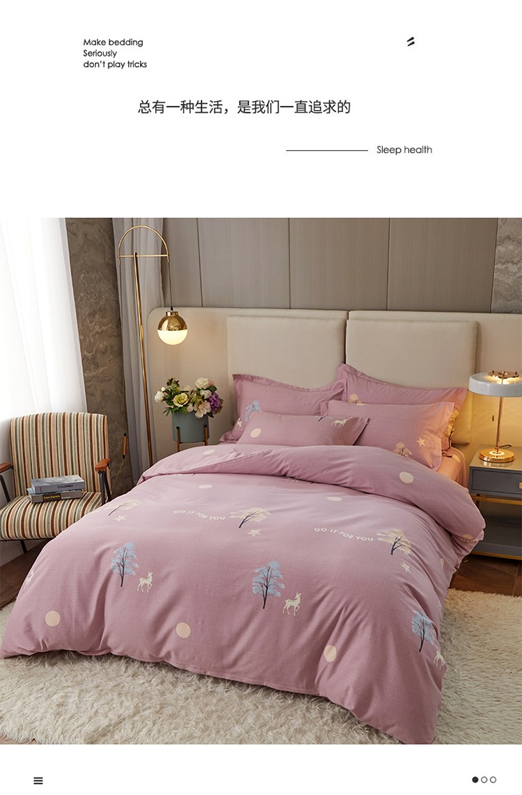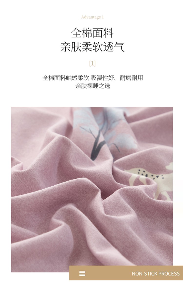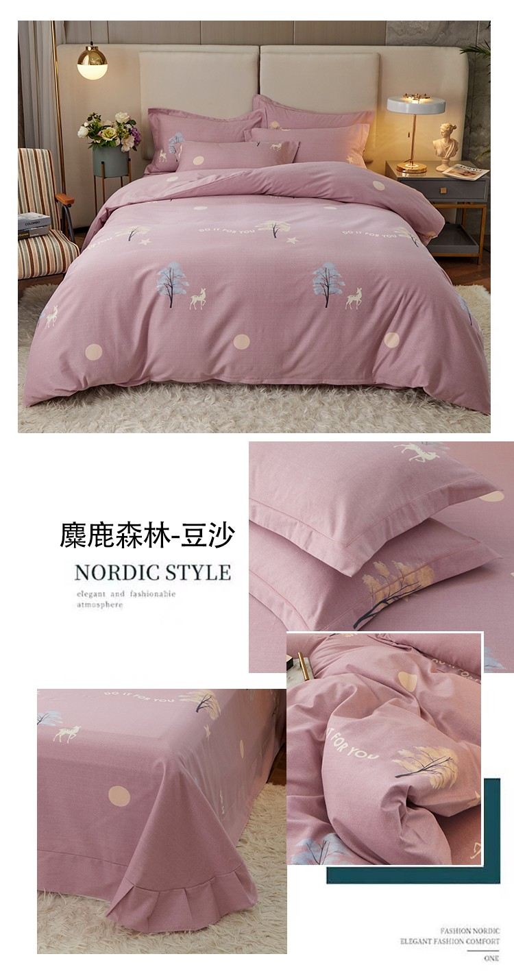 商品名称:金纱玉纺 2022新款全棉印花加厚磨毛四件套 麋鹿森林-豆沙