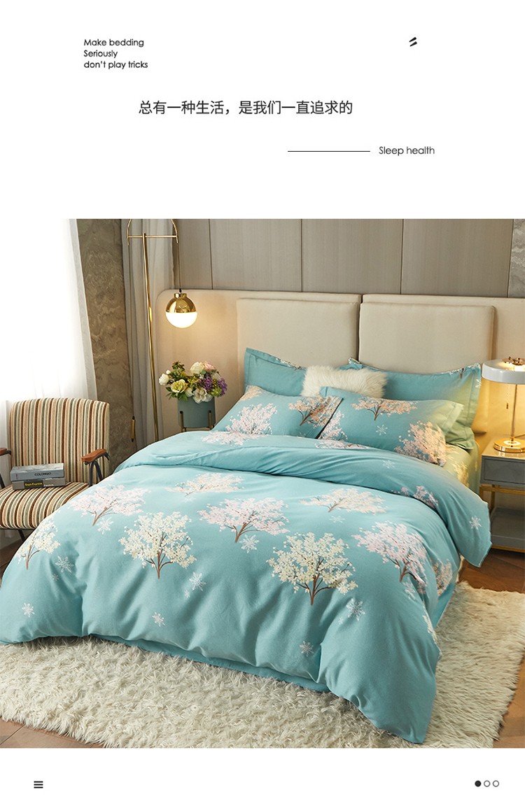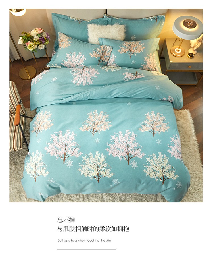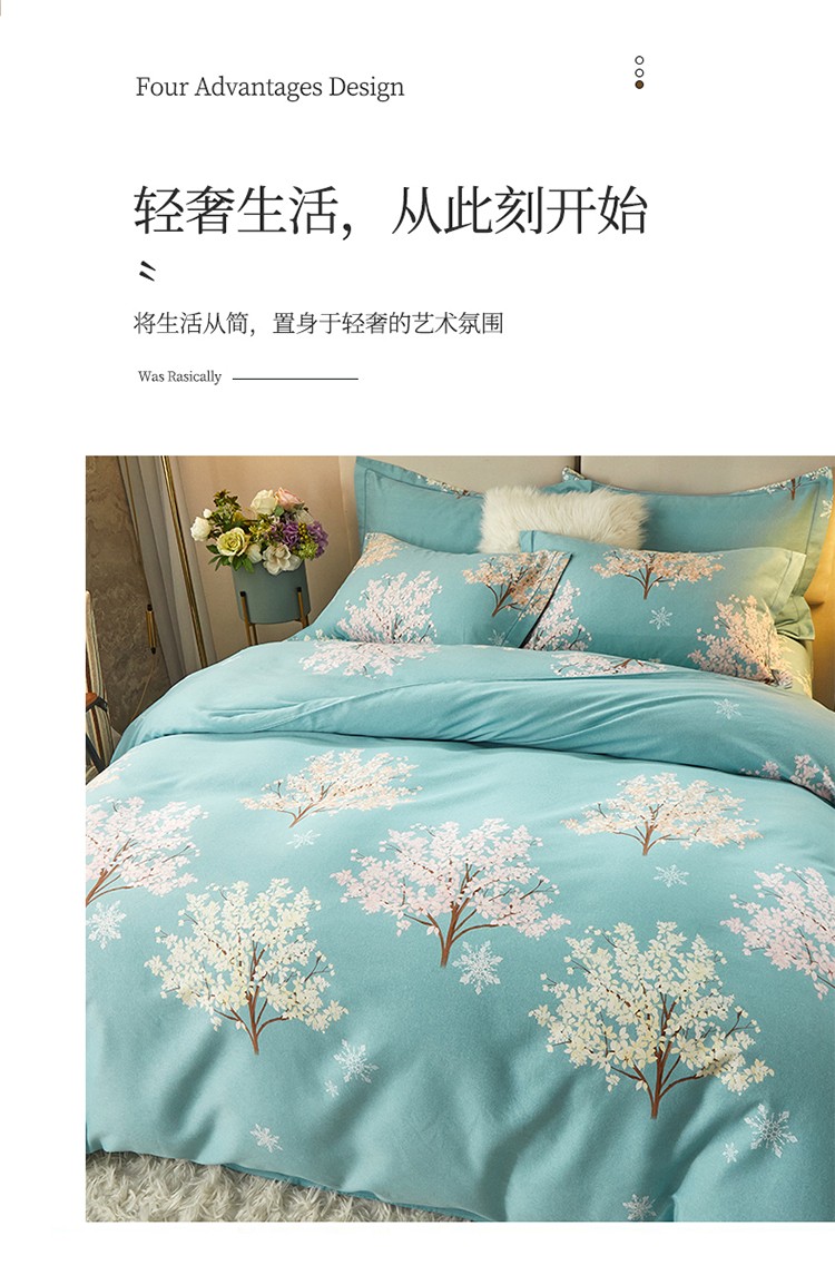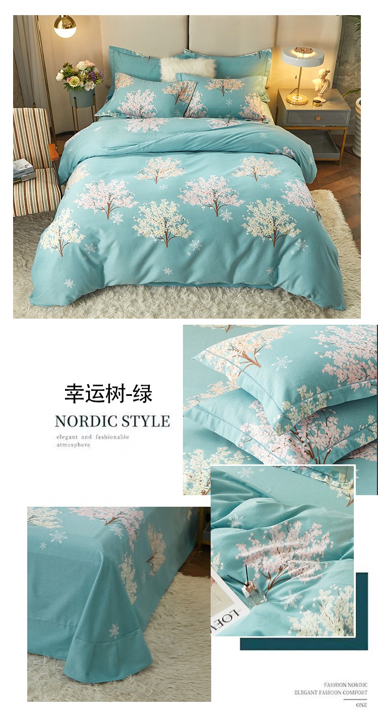 商品名称:金纱玉纺 2022新款全棉印花加厚磨毛四件套 幸运树-绿