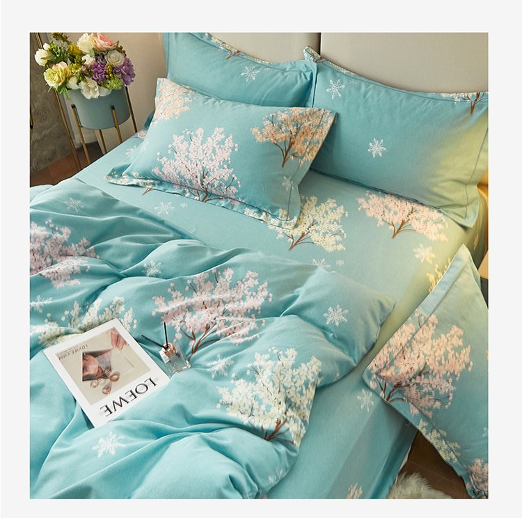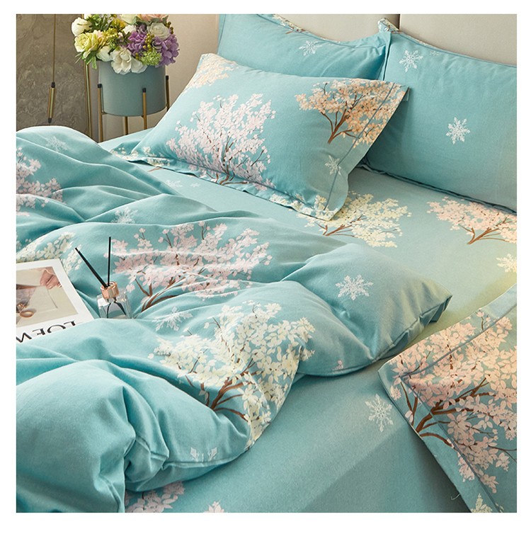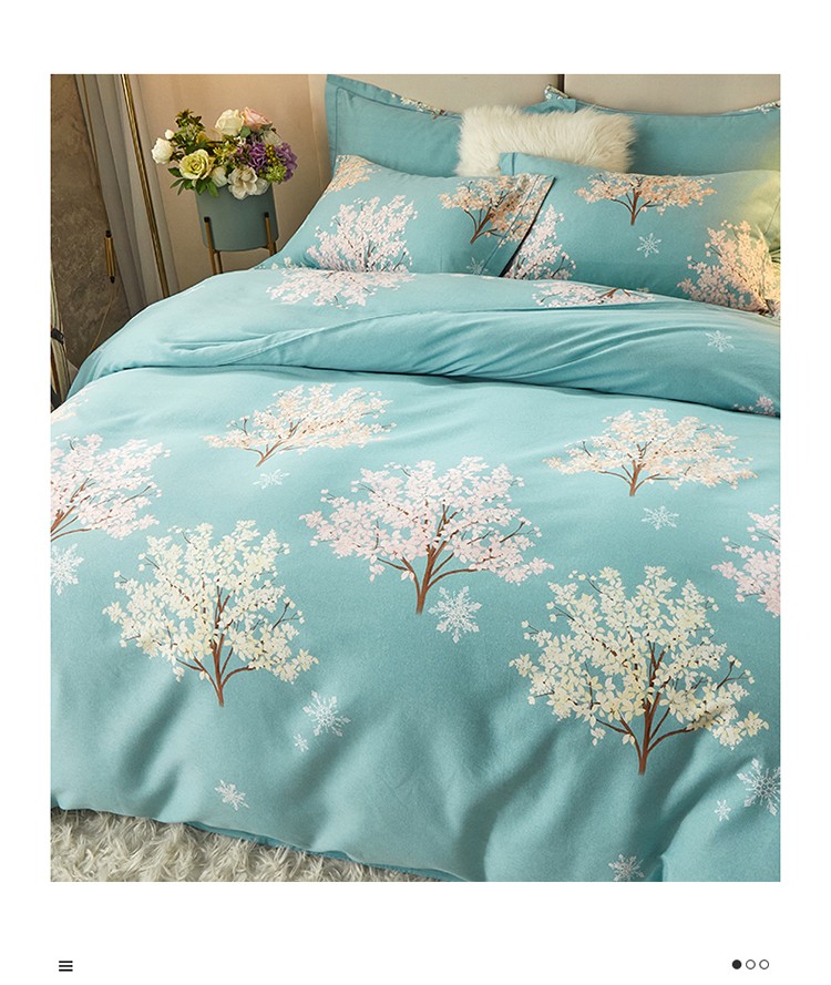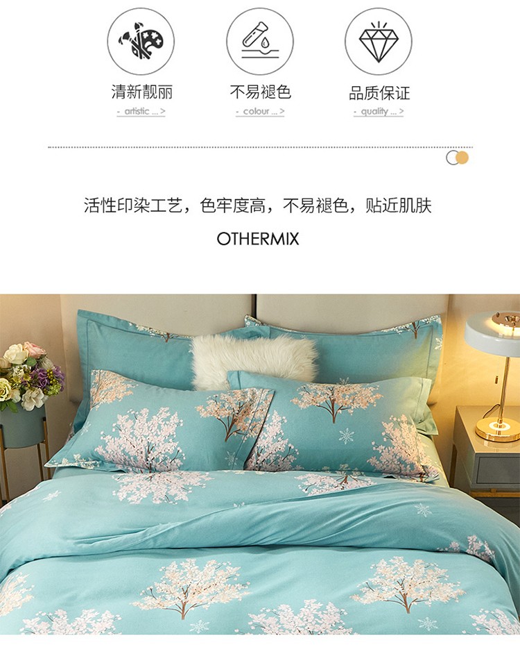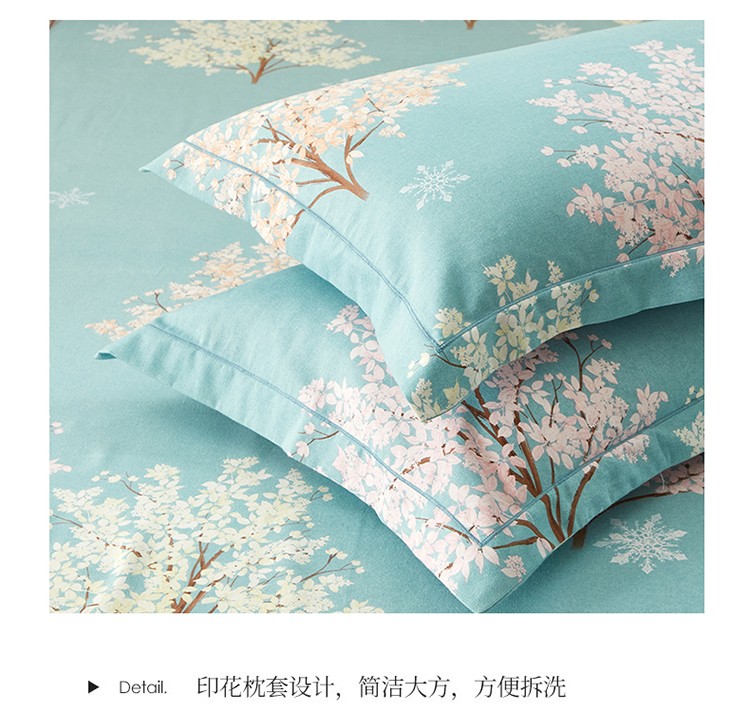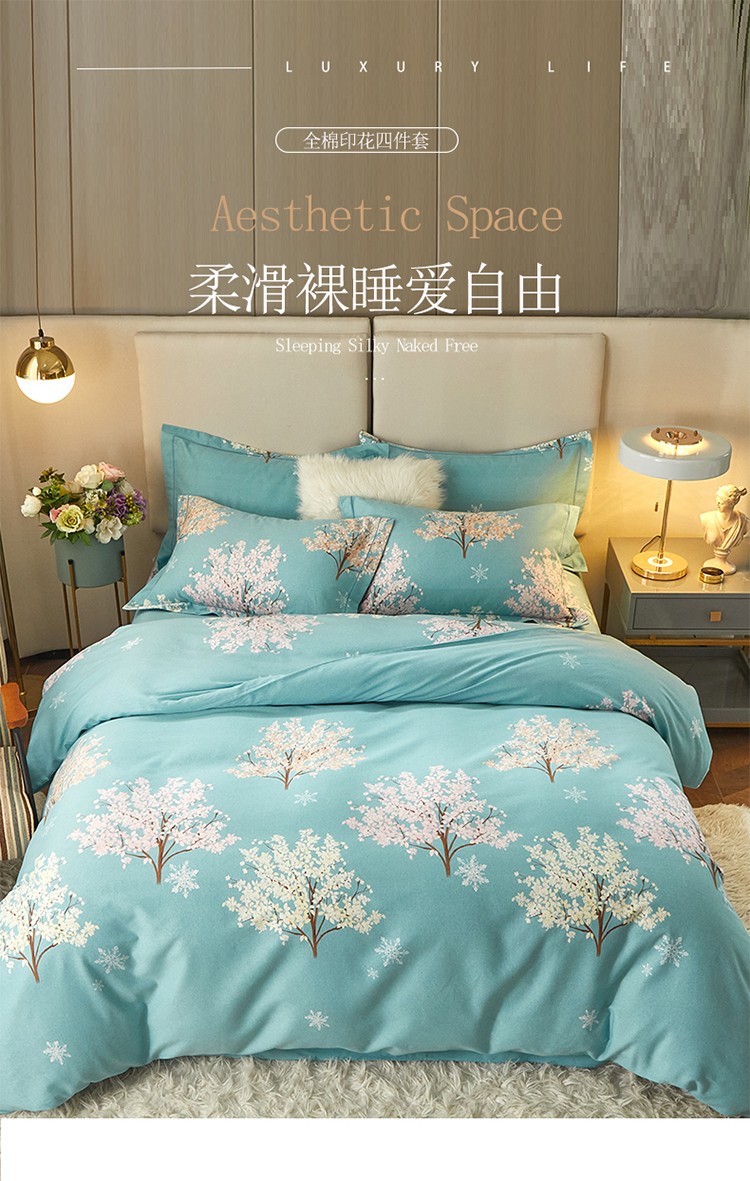 商品名称:金纱玉纺 2022新款全棉印花加厚磨毛四件套 幸运树-绿