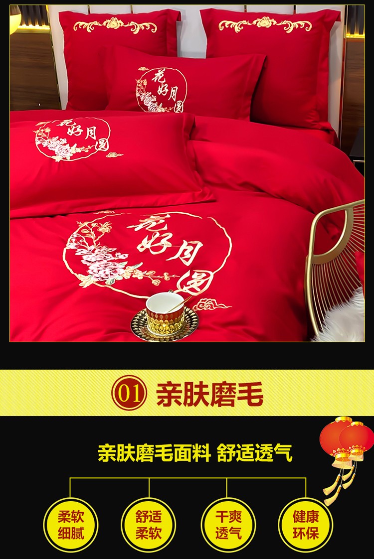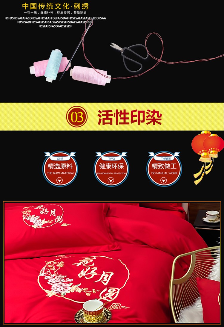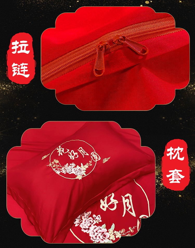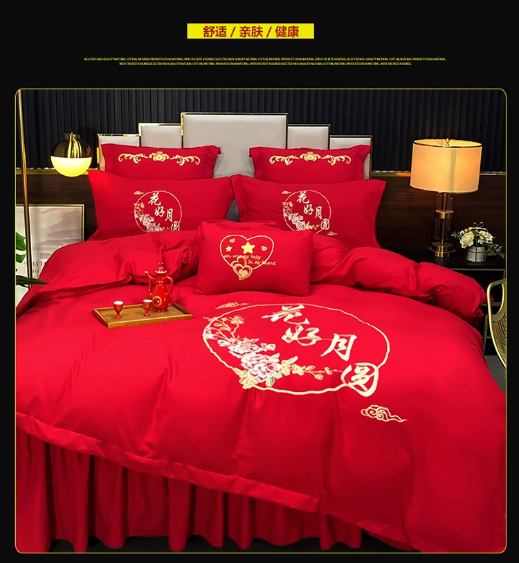 当前位置: 91家纺网 > 商品网购 > 床品套件 > 多件套 > 多件套 > 婚庆四件套大红色刺绣结婚六七件套多件套喜庆婚礼婚被床上用品 花好月圆
