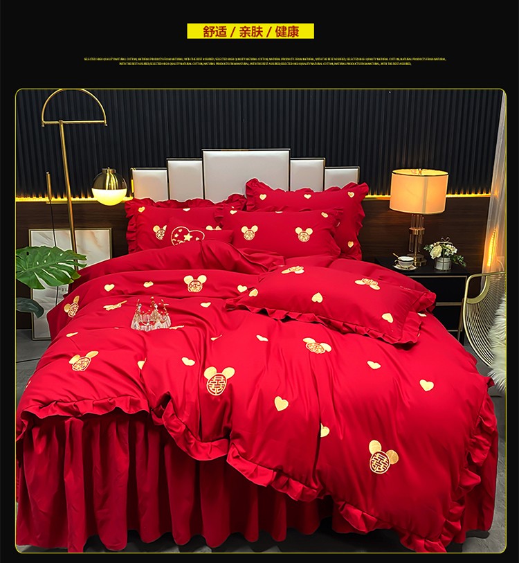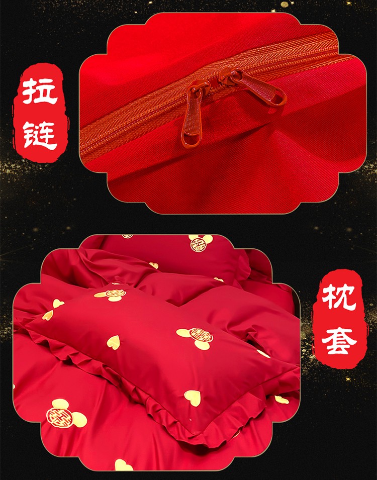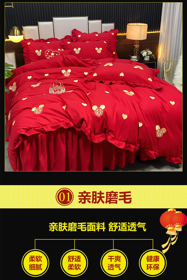 当前位置: 91家纺网 > 商品网购 > 床品套件 > 多件套 > 多件套 > 婚庆四件套大红色刺绣结婚六七件套多件套喜庆婚礼婚被床上用品 喜笑颜开