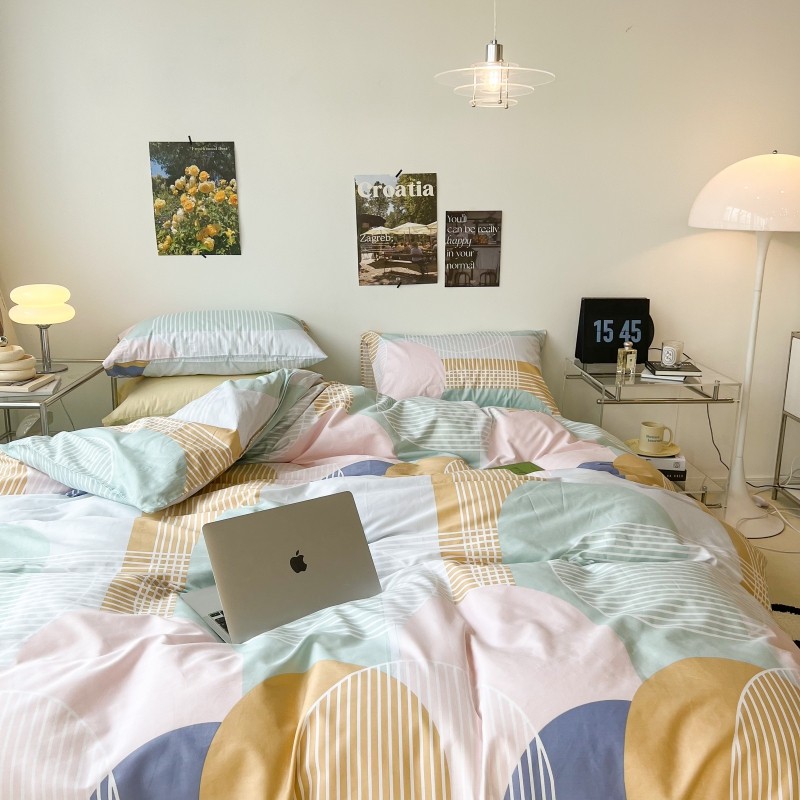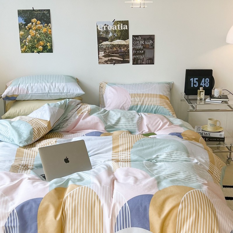 (总)昔可家纺 2023新款全棉学生季北欧风四件套,北欧几何,荷兰印象,机理格,几何爱心,泼墨爱心黑,轻奢彩条,塞纳灰,塞纳蓝