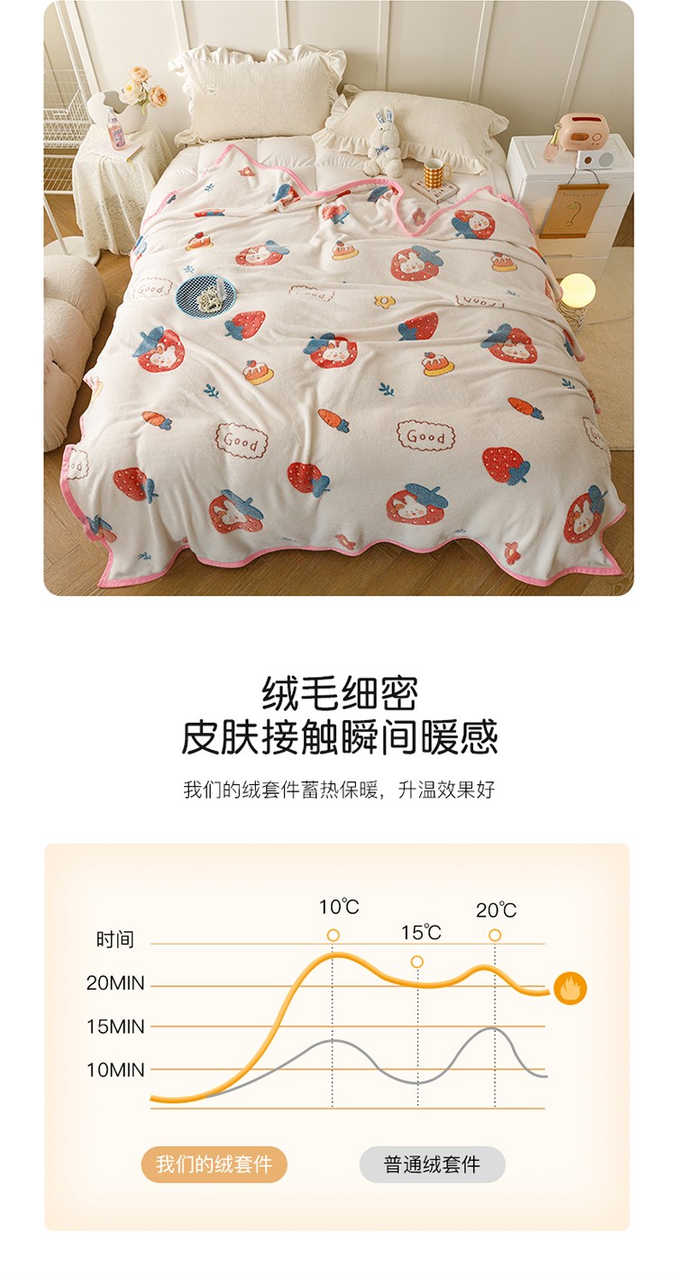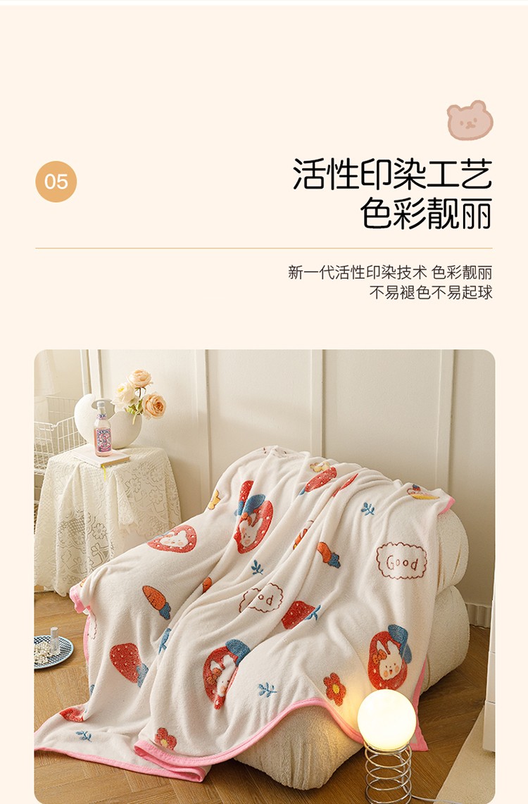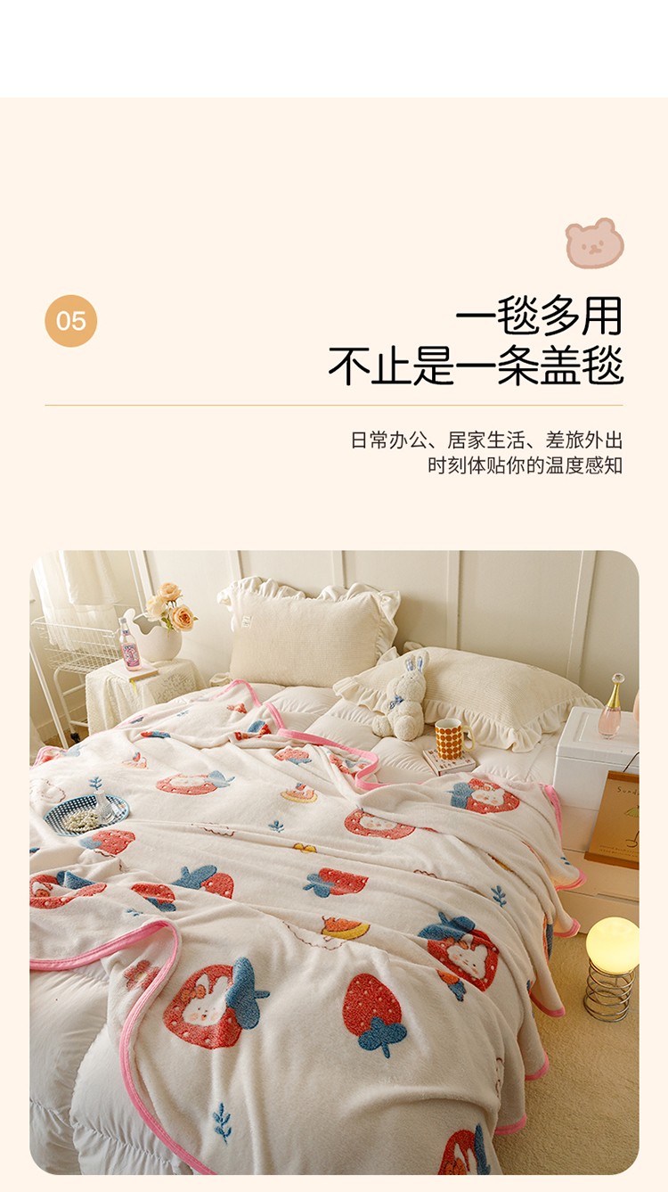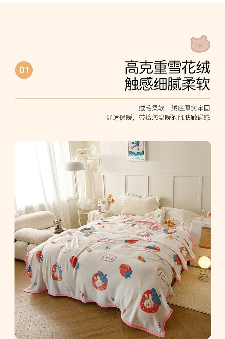 慕尚2022新款雪花绒毛毯印花牛奶绒盖毯沙发午睡毯子草莓兔兔