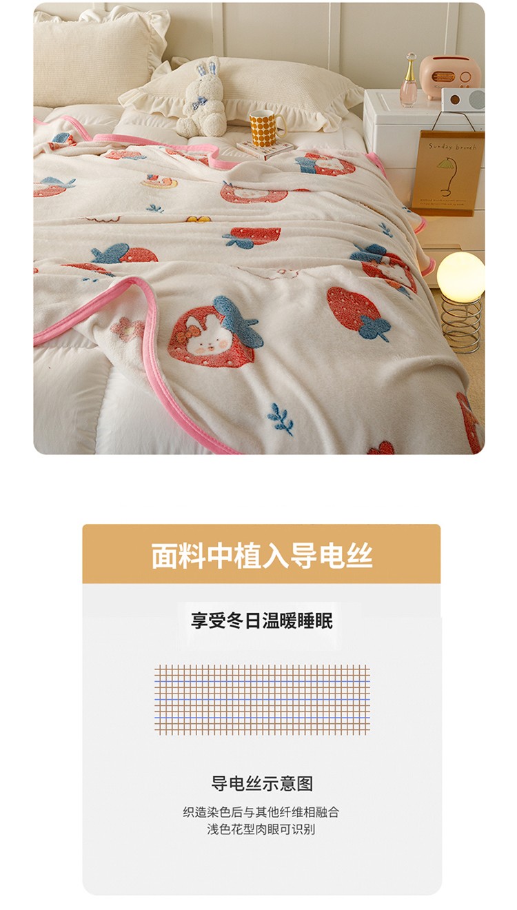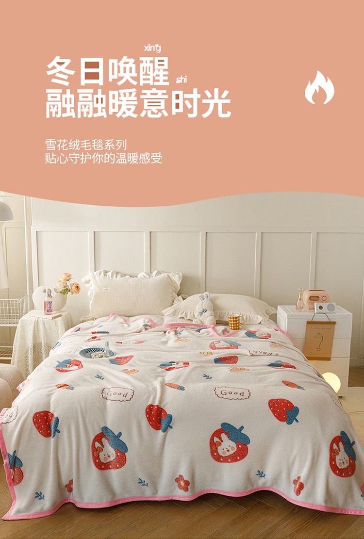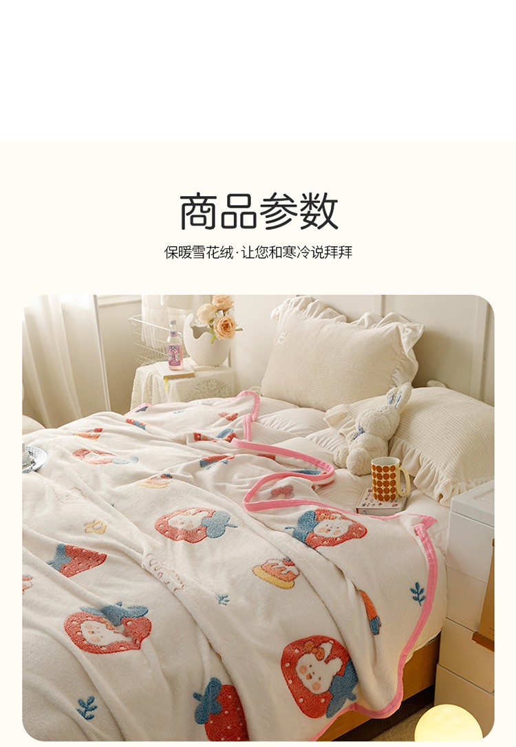 商品名称:慕尚2022新款雪花绒毛毯印花牛奶绒盖毯沙发午睡毯子草莓兔兔