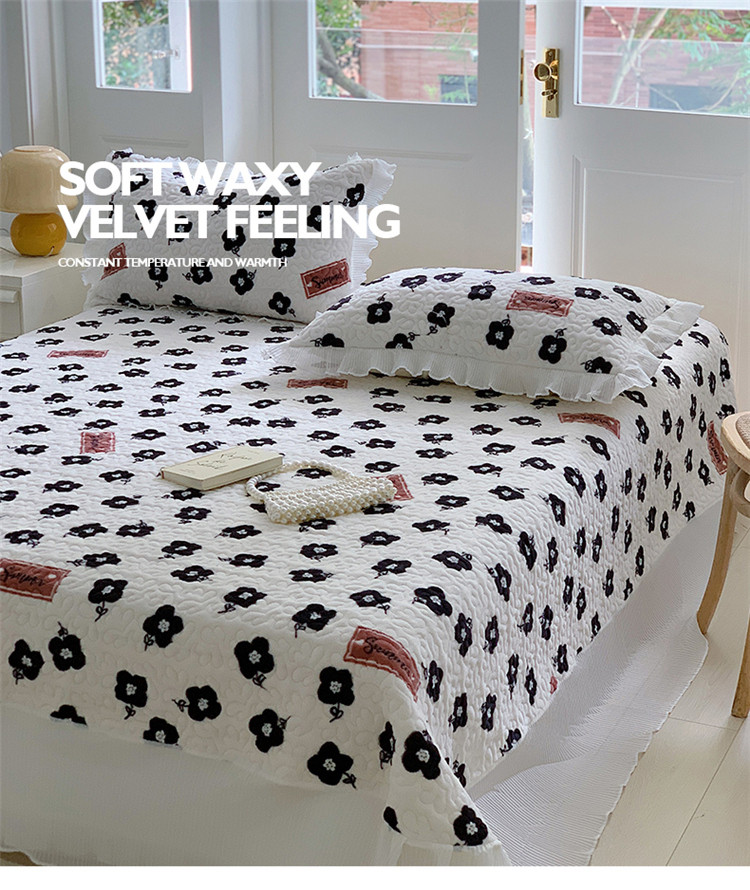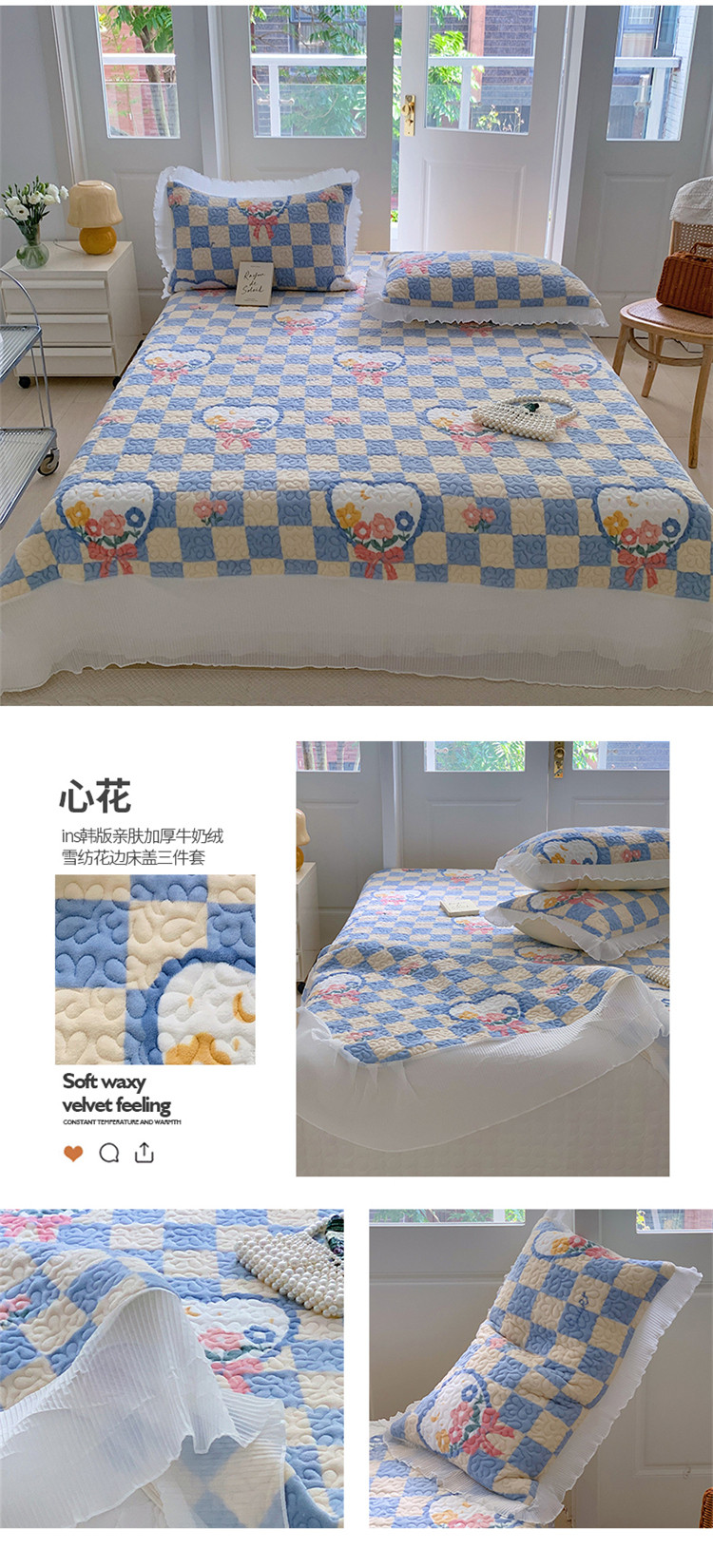 (总)桃子新款ins韩版亲肤加厚牛奶绒雪纺花边床盖三件套