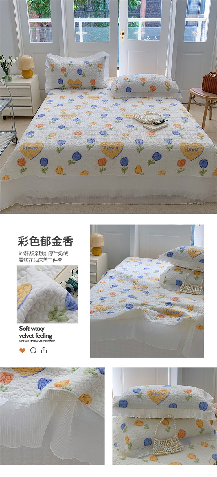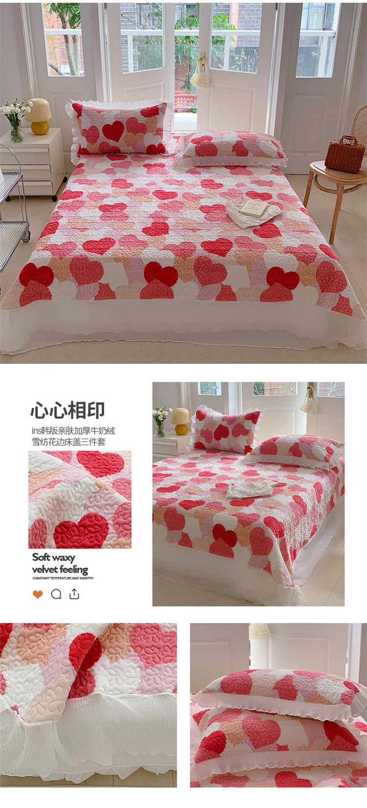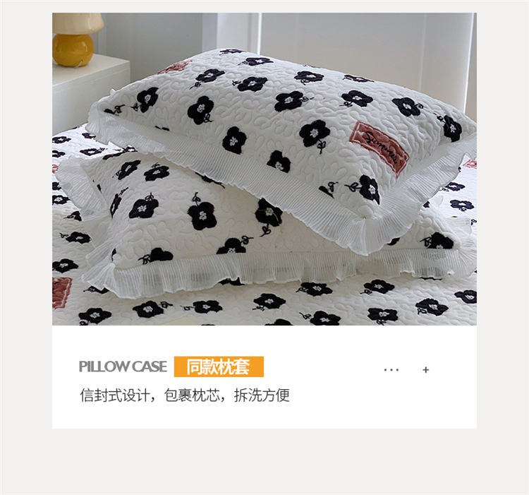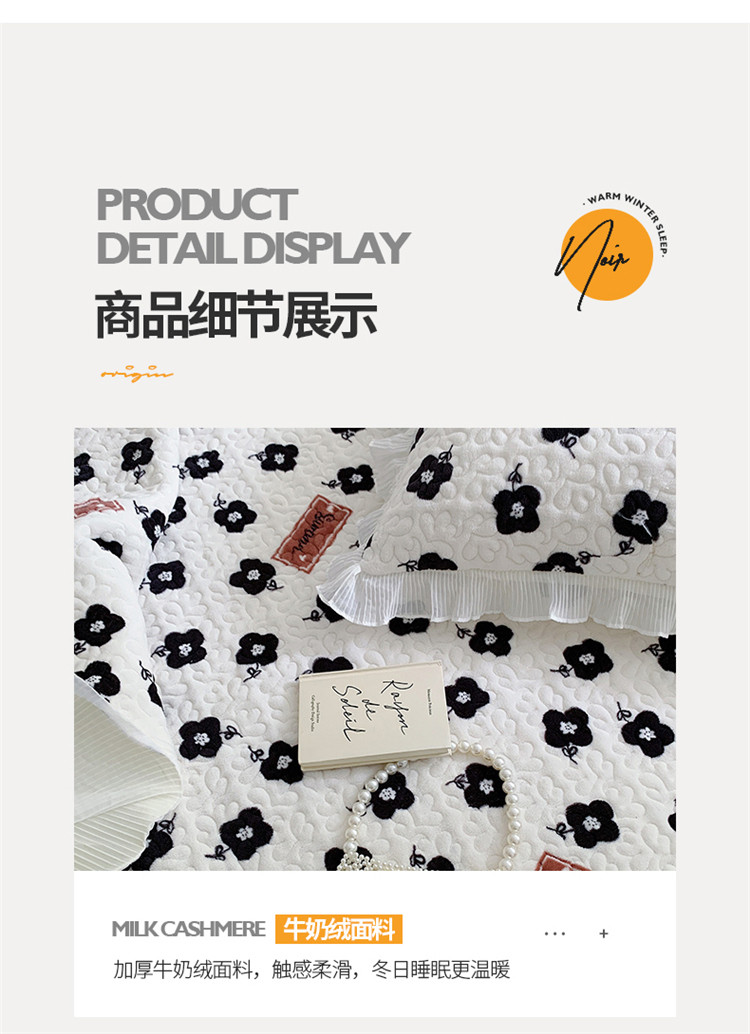 商品名称:(总)桃子新款ins韩版亲肤加厚牛奶绒雪纺花边床盖三件套