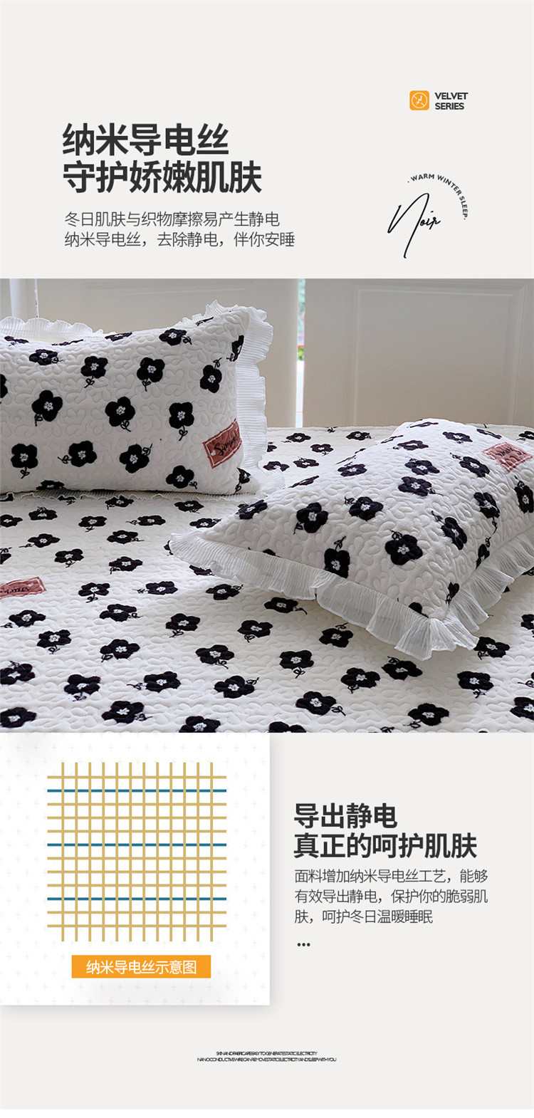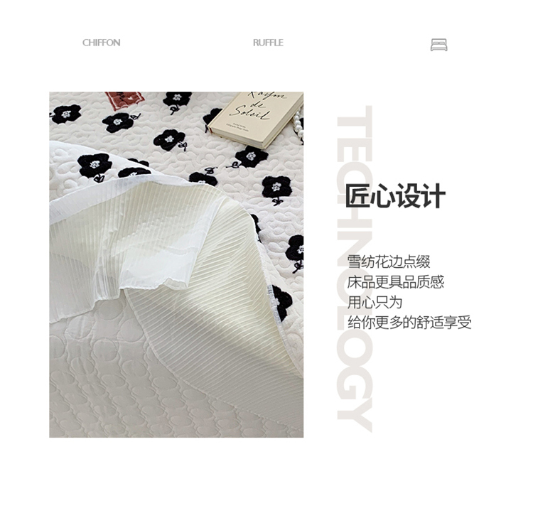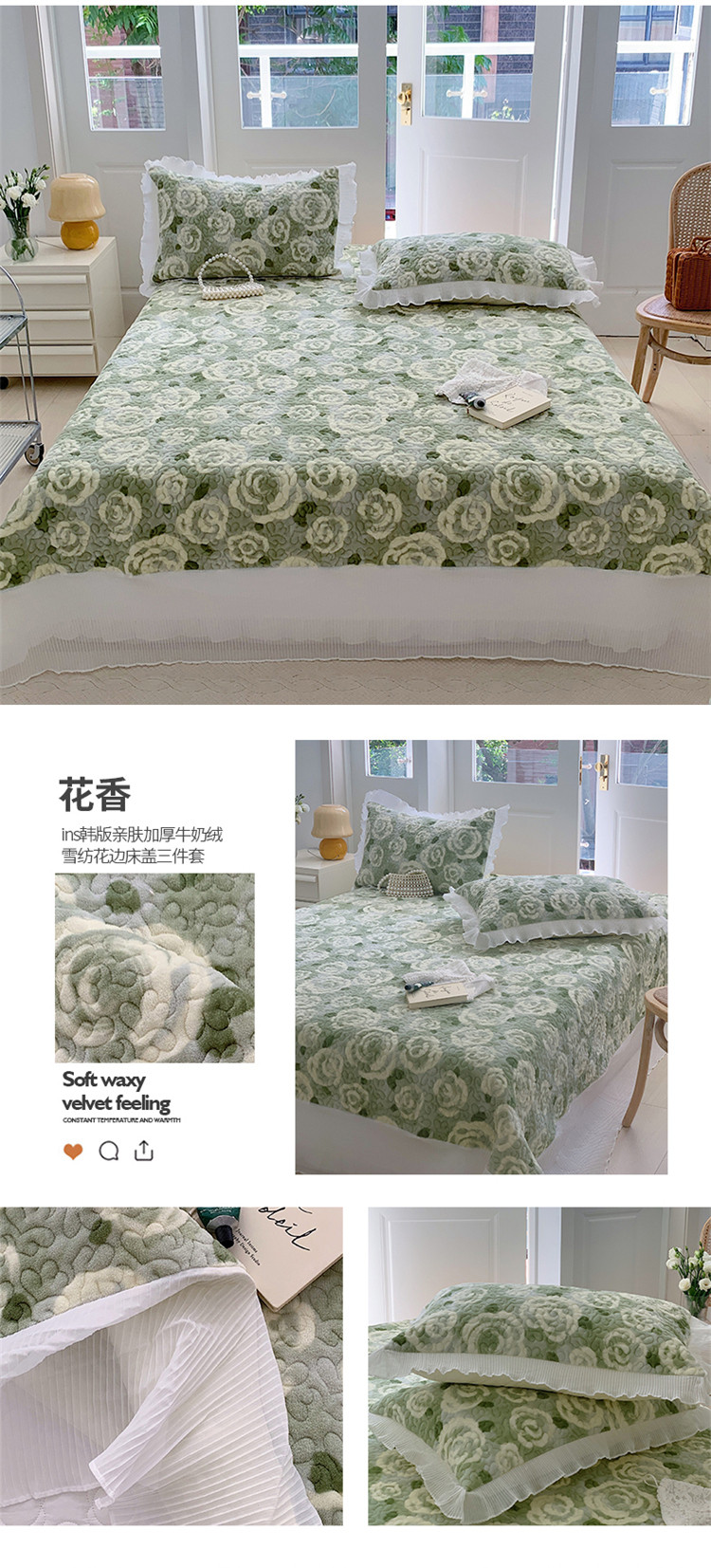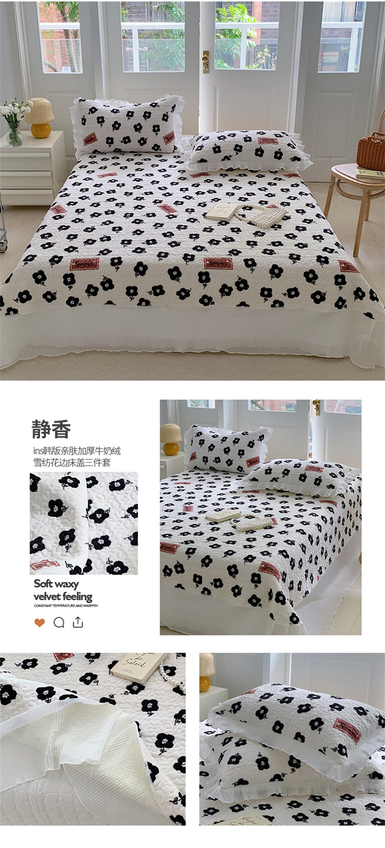 商品名称:(总)桃子新款ins韩版亲肤加厚牛奶绒雪纺花边床盖三件套