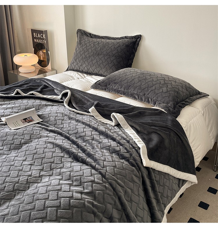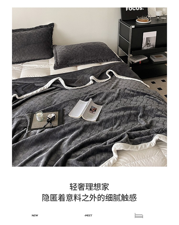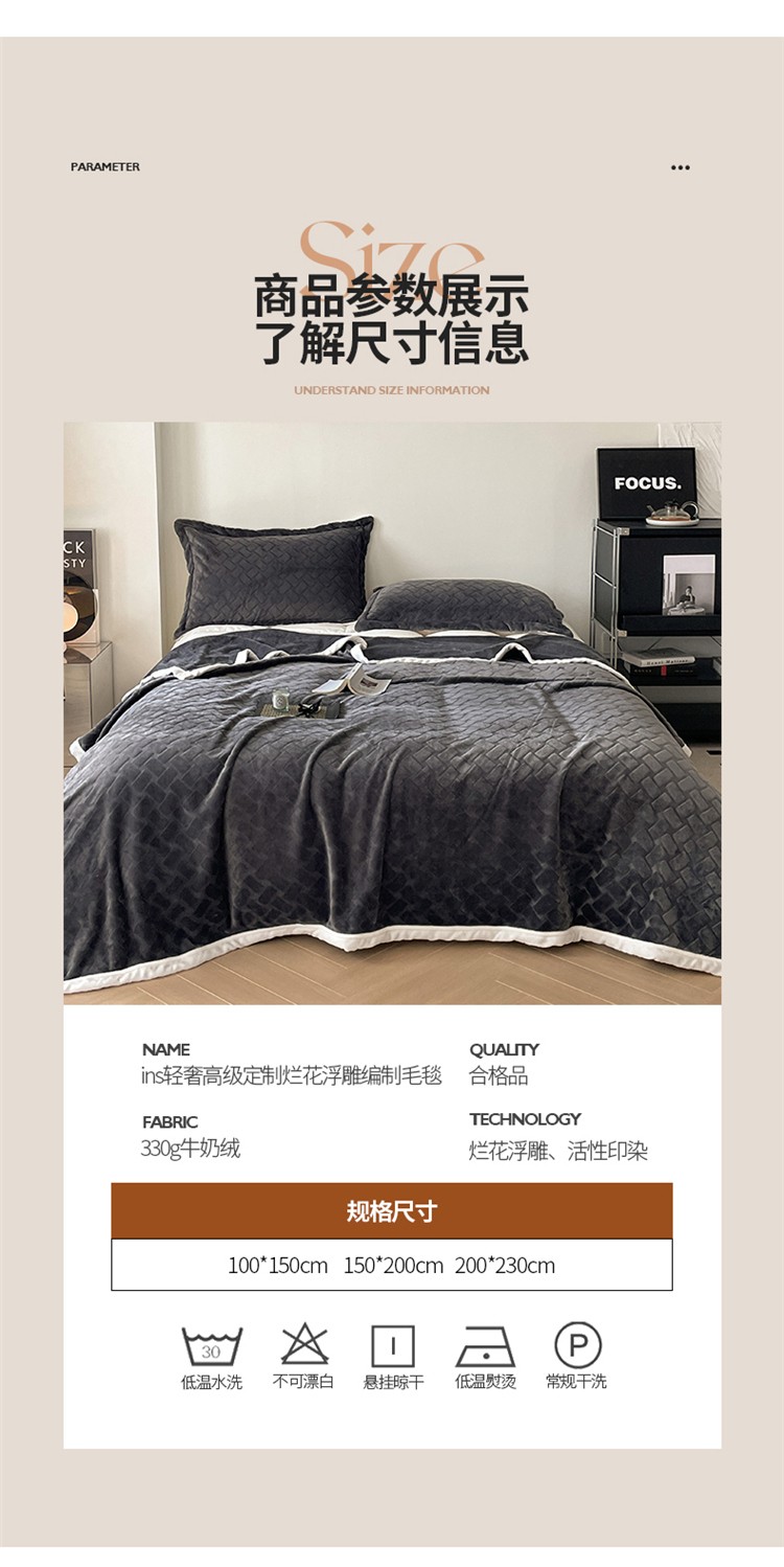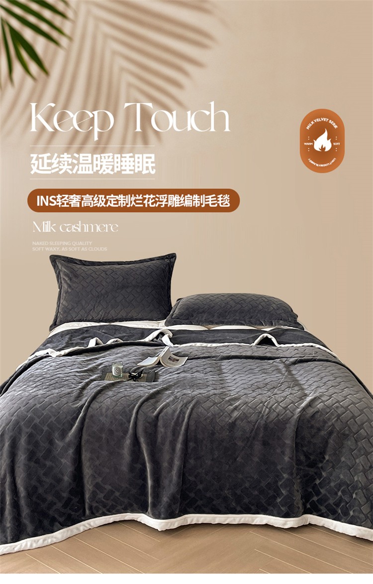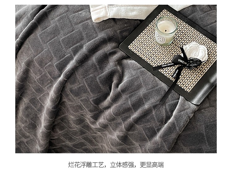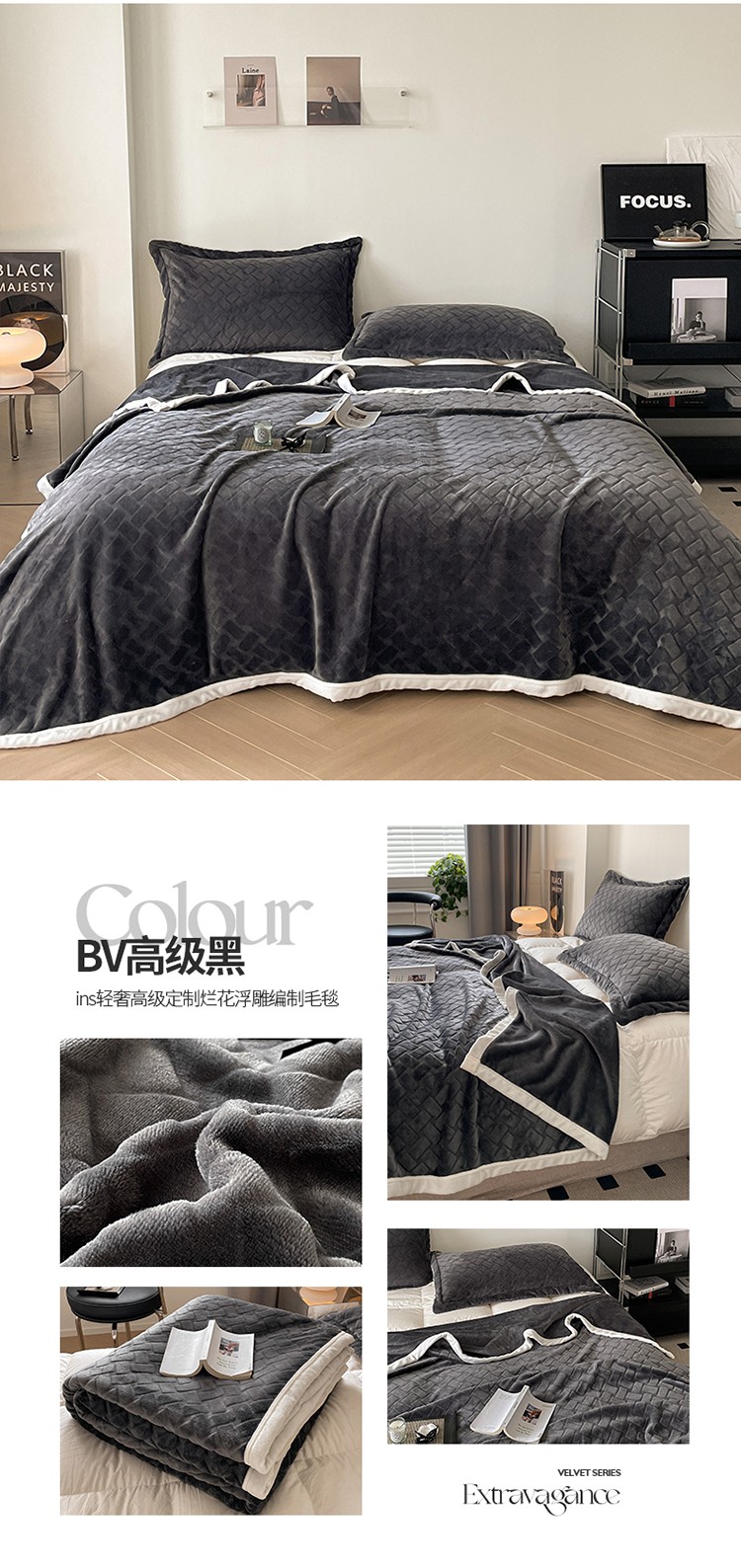 桃子ins轻奢高级定制烂花浮雕编制牛奶绒毛毯毛毯-BV高级黑