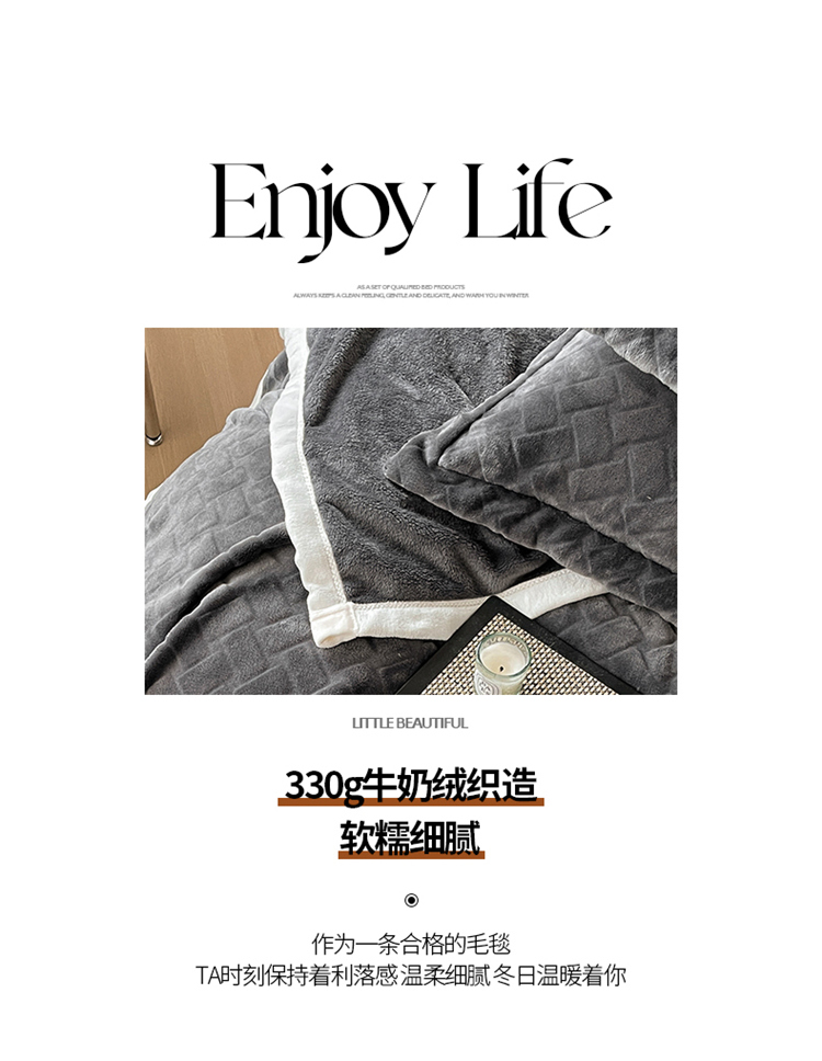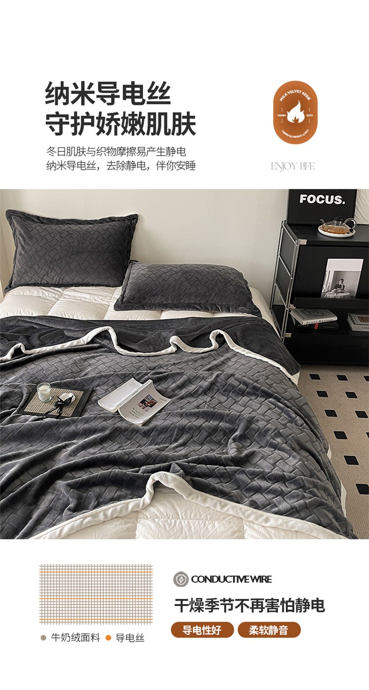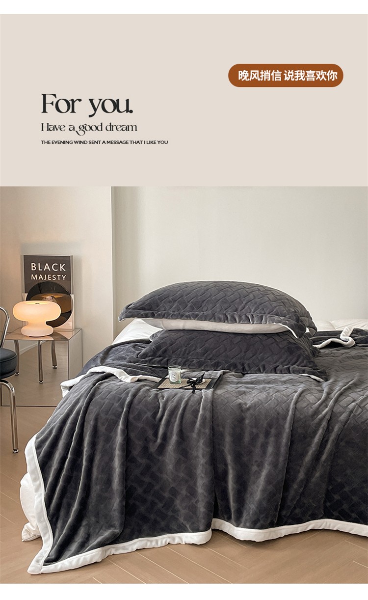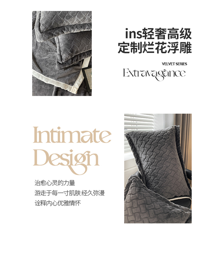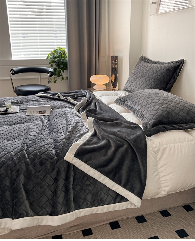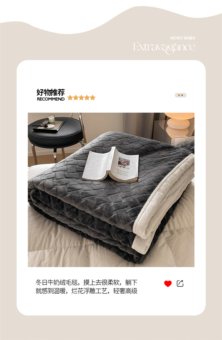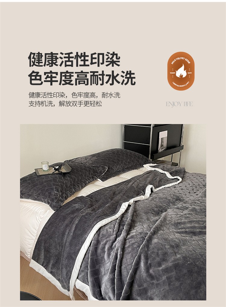 桃子ins轻奢高级定制烂花浮雕编制牛奶绒毛毯毛毯-BV高级黑