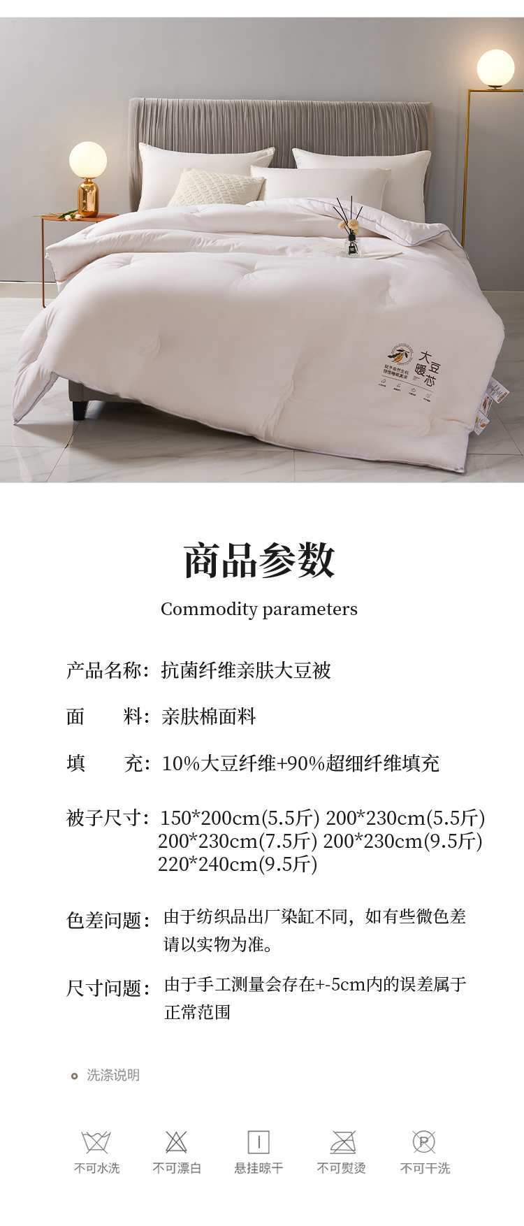 商品名称:畅畅家纺 2022新款抗菌纤维亲肤大豆被子被子 珍珠白