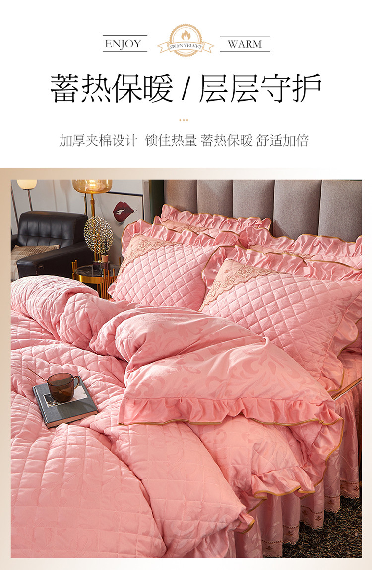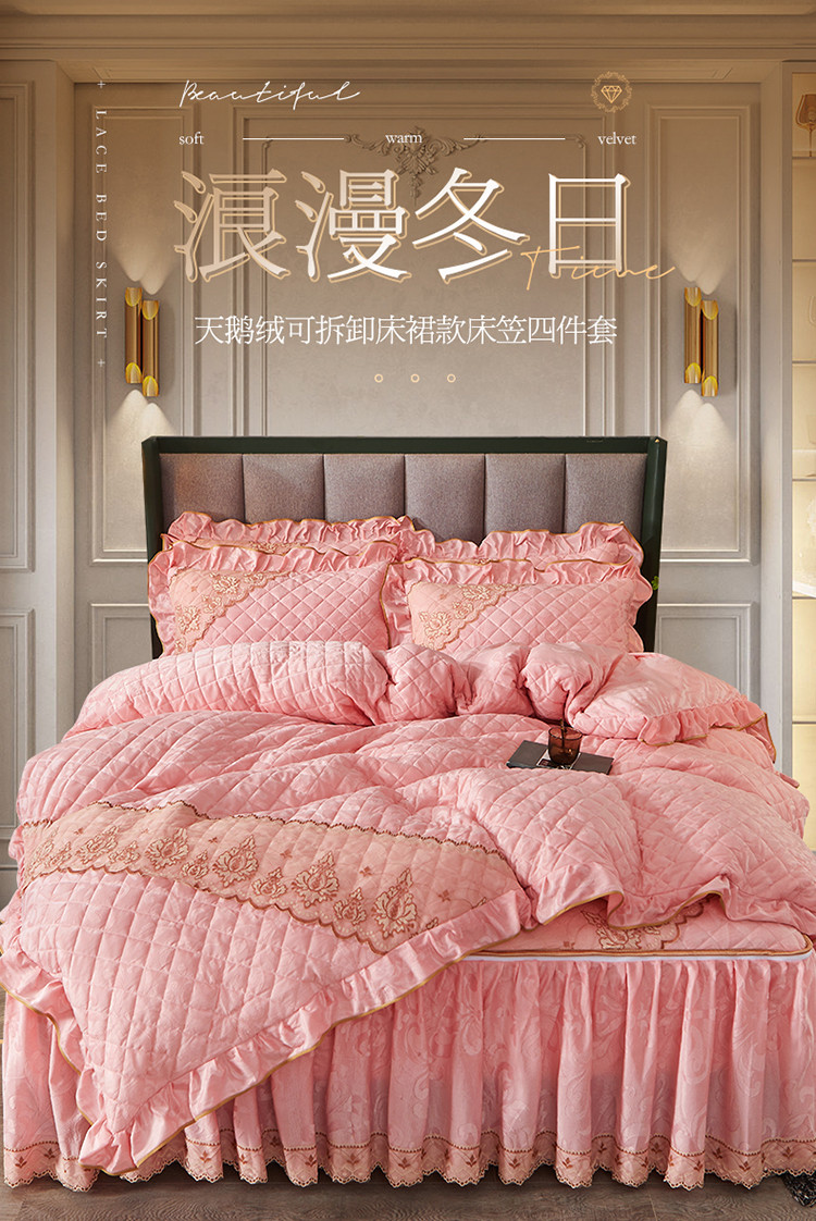 当前位置: 91家纺网 > 商品网购 > 床品套件 > 四件套 > 天鹅绒四件套 > 网红馆 2025新品天鹅绒夹棉床裙四件套 幻城巴黎 柔玉