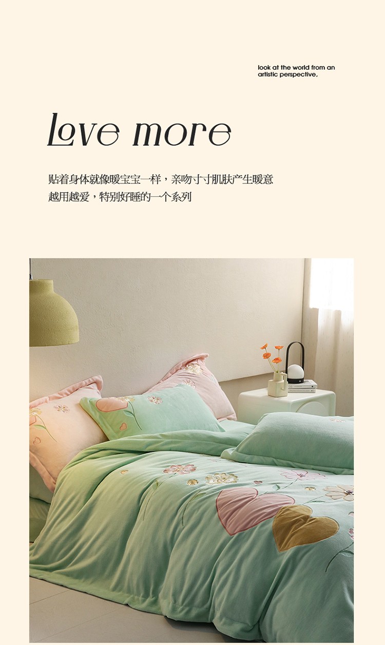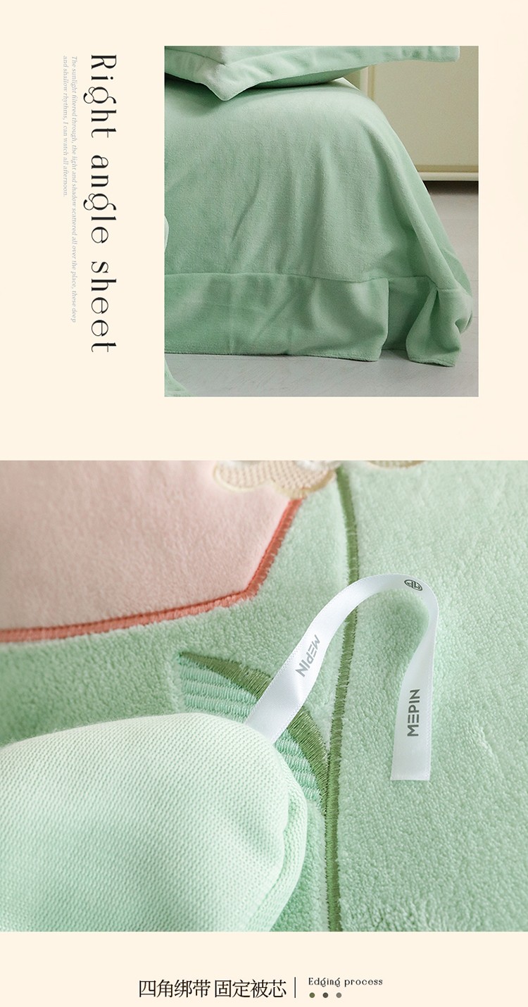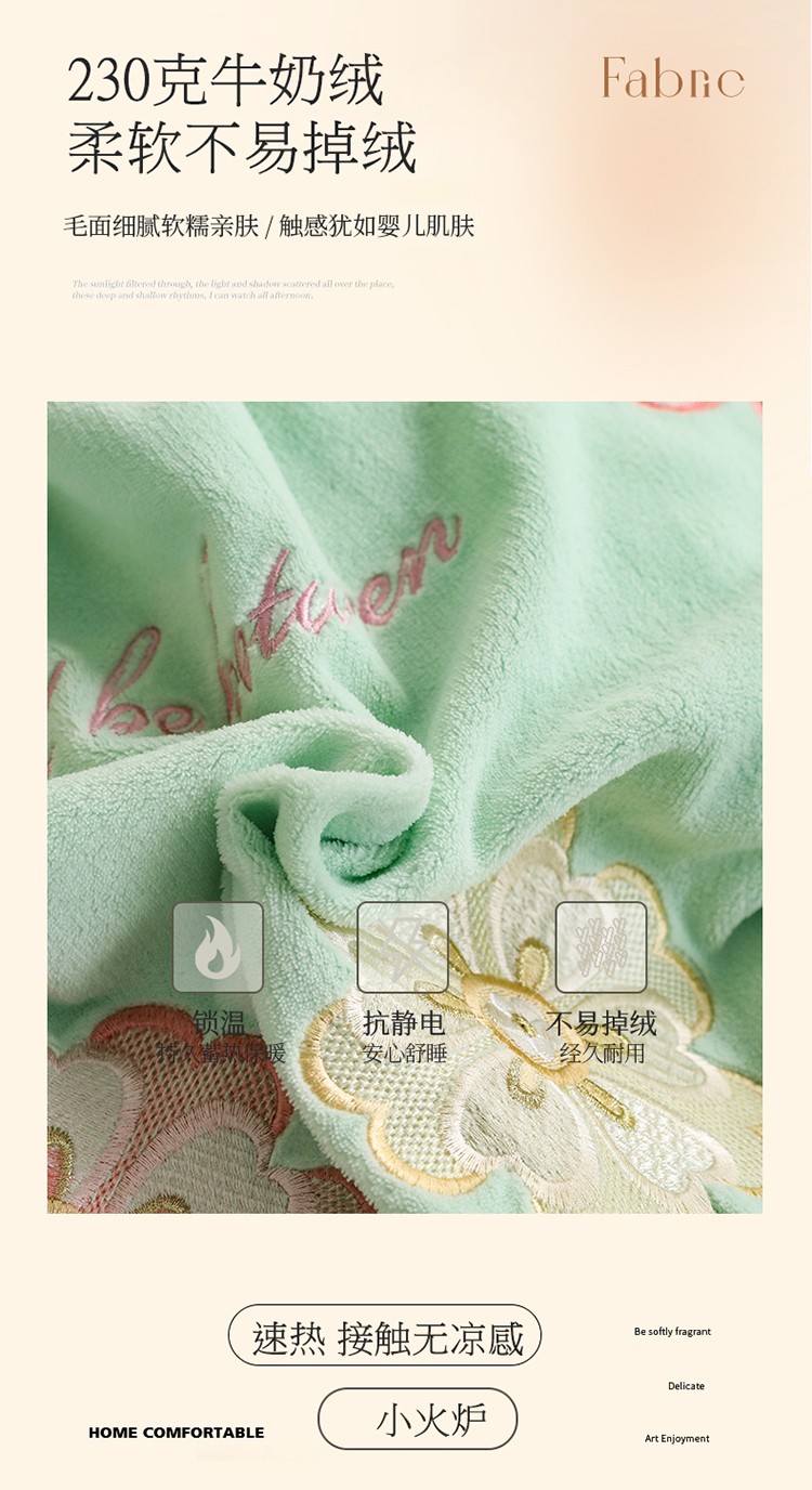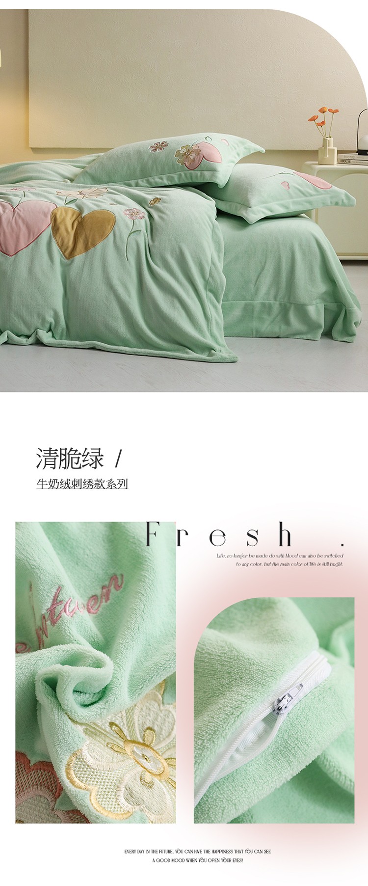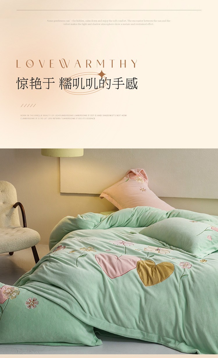 商品名称:名品优仓2022新款大贴布绣刺绣牛奶绒230克四件套彩色甜心 清脆绿