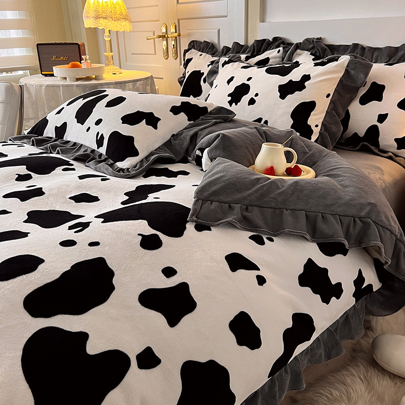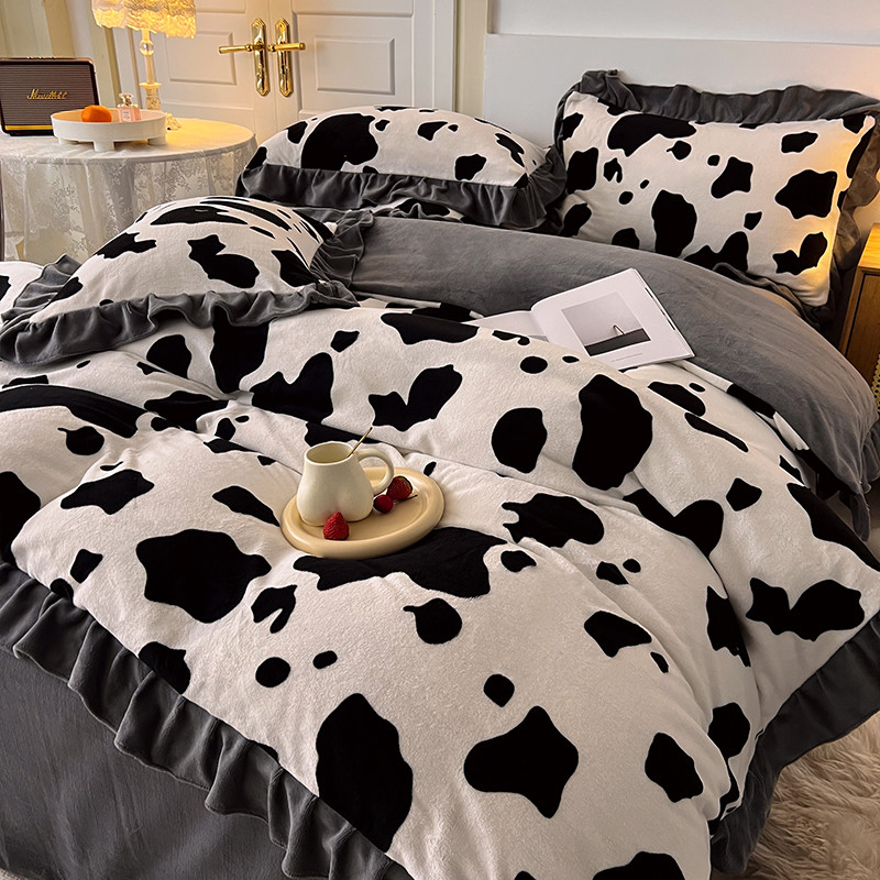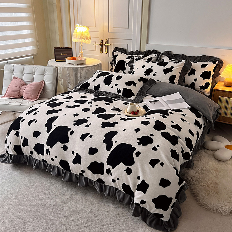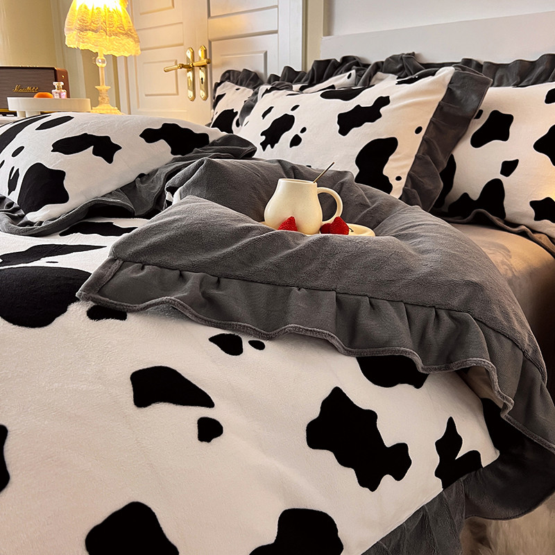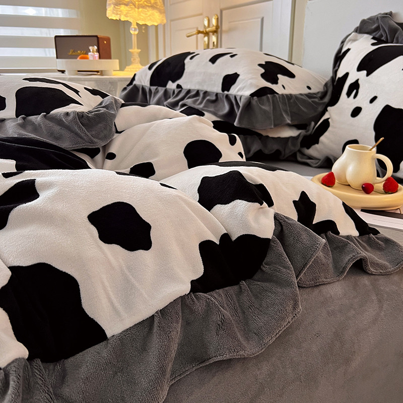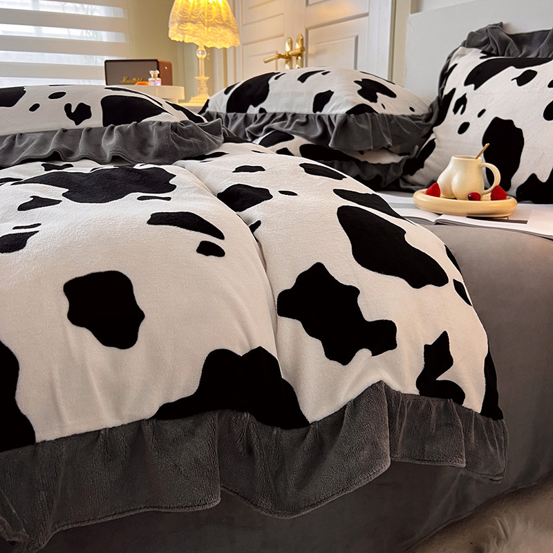 商品名称:维娜斯 2022新款高克重牛奶绒花边四件套 花边-奶牛
