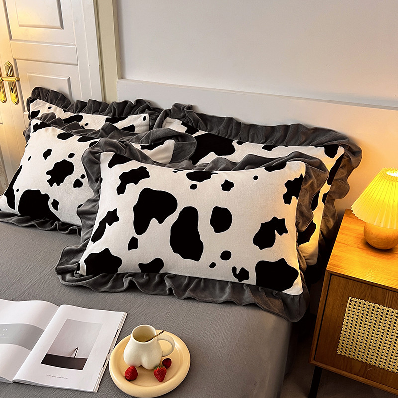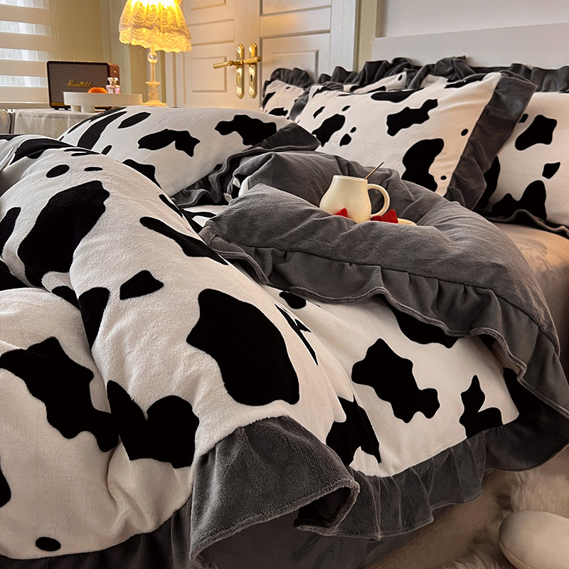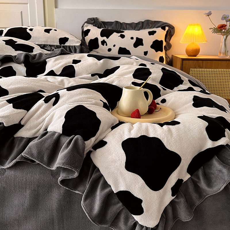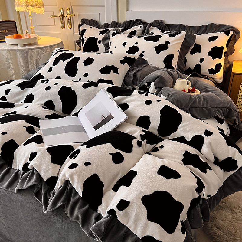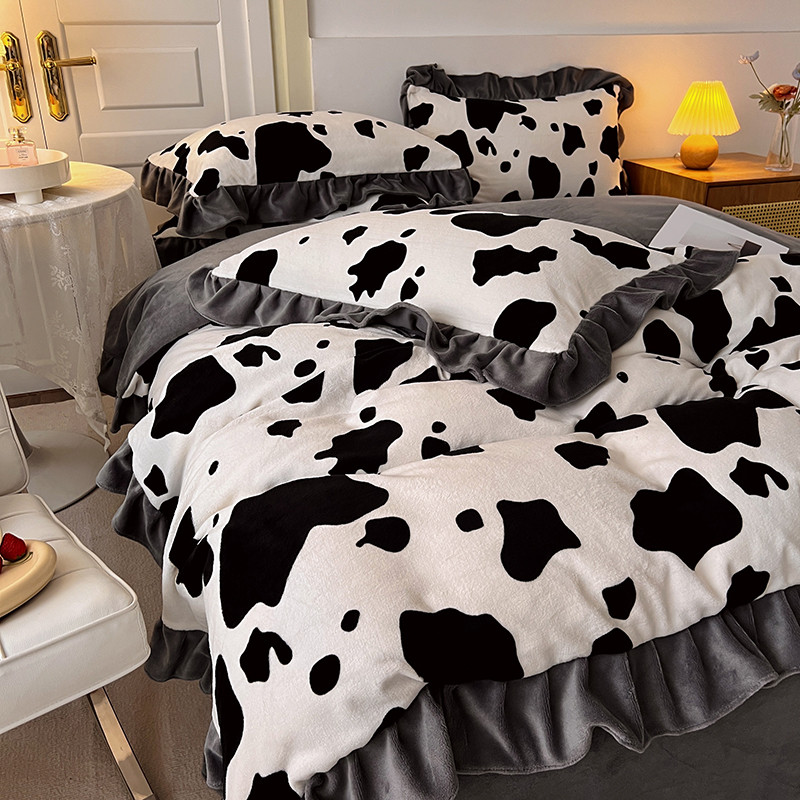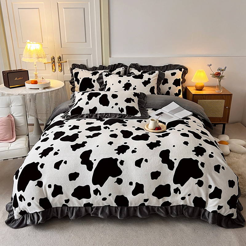 商品名称:维娜斯 2022新款高克重牛奶绒花边四件套 花边-奶牛