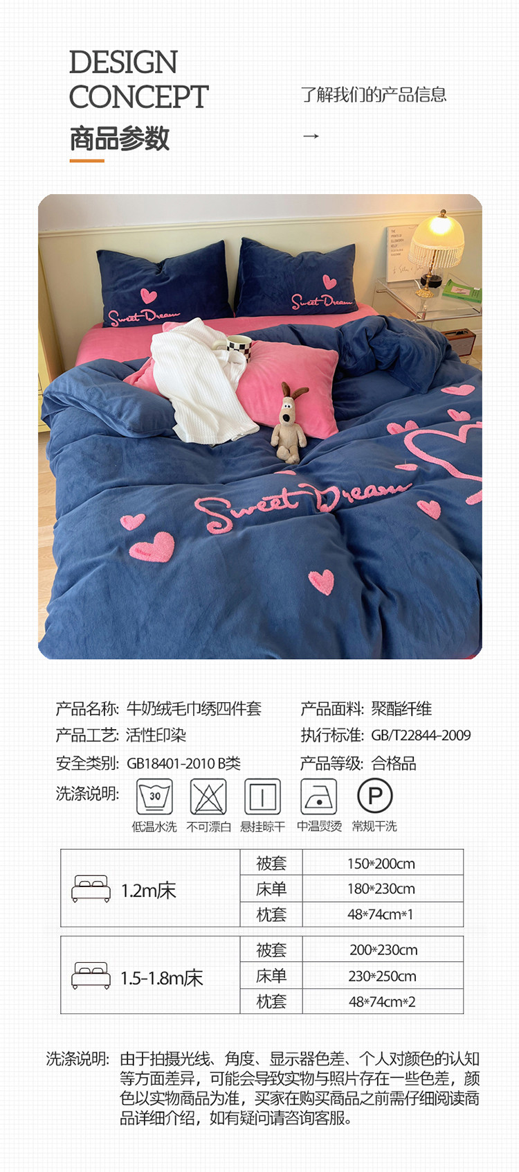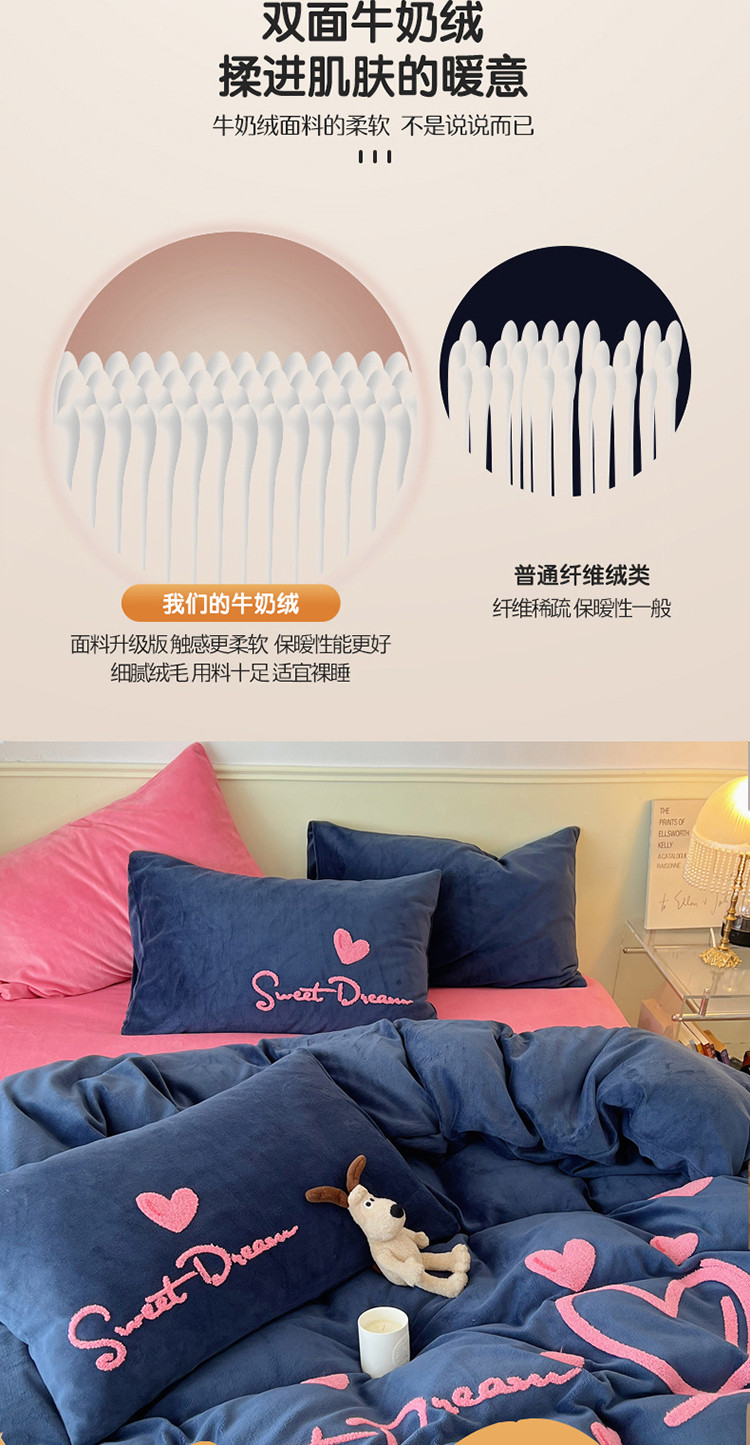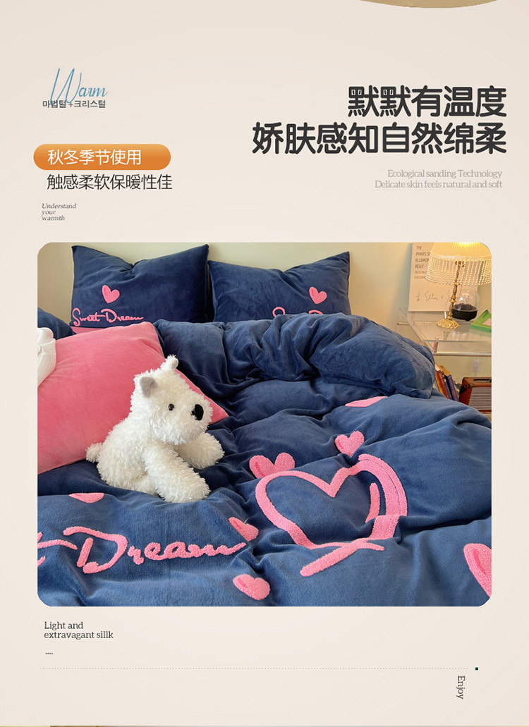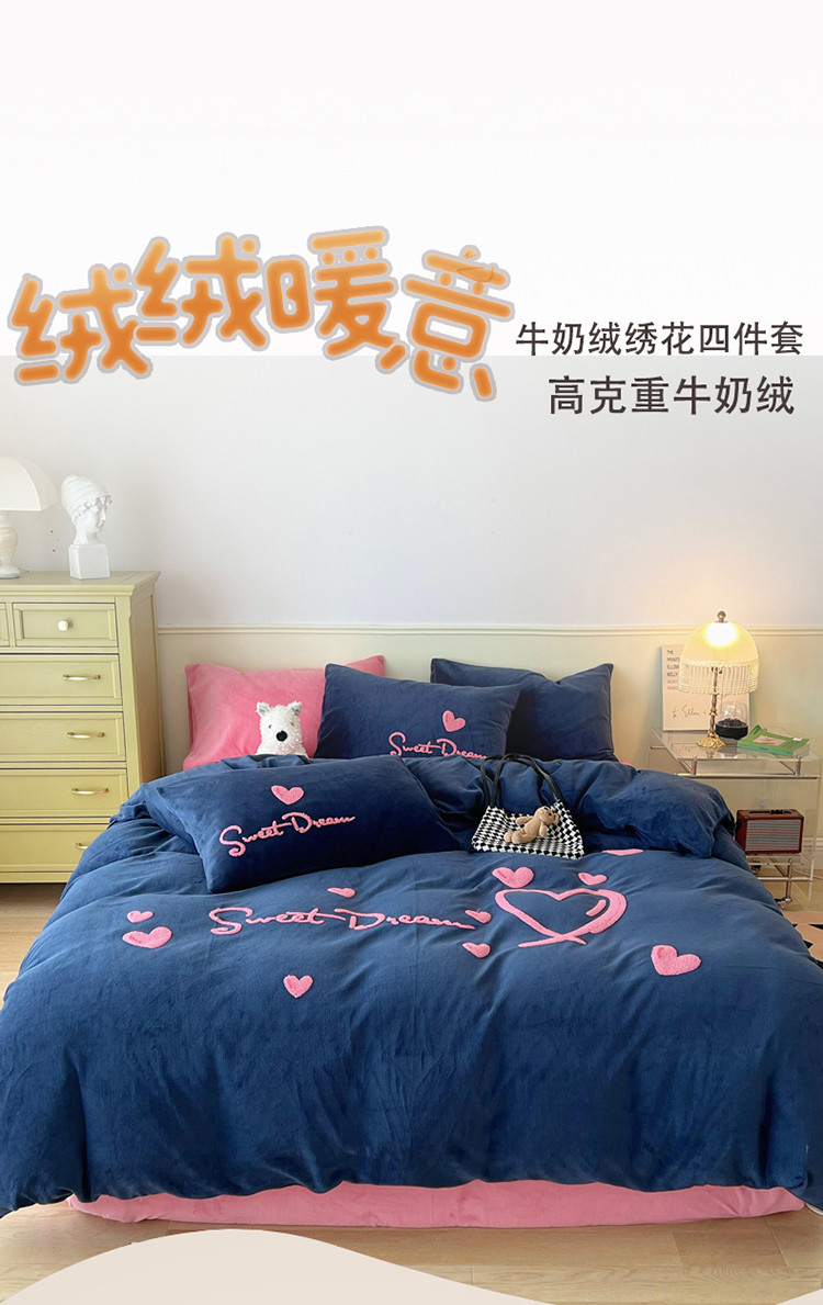 三朵 2022新款牛奶绒绣花四件套-场景二 心情-布鲁蓝