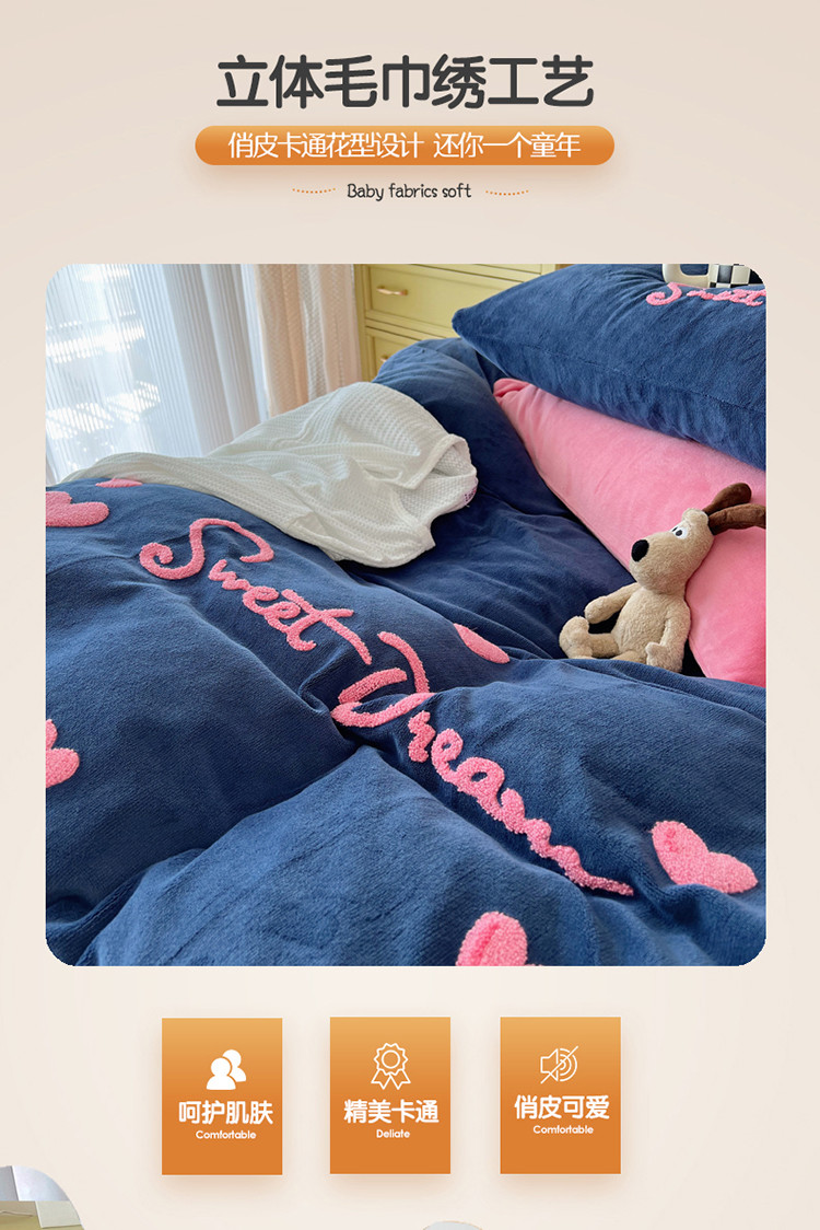 商品名称:三朵 2022新款牛奶绒绣花四件套-场景二 心情-布鲁蓝