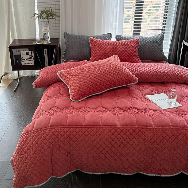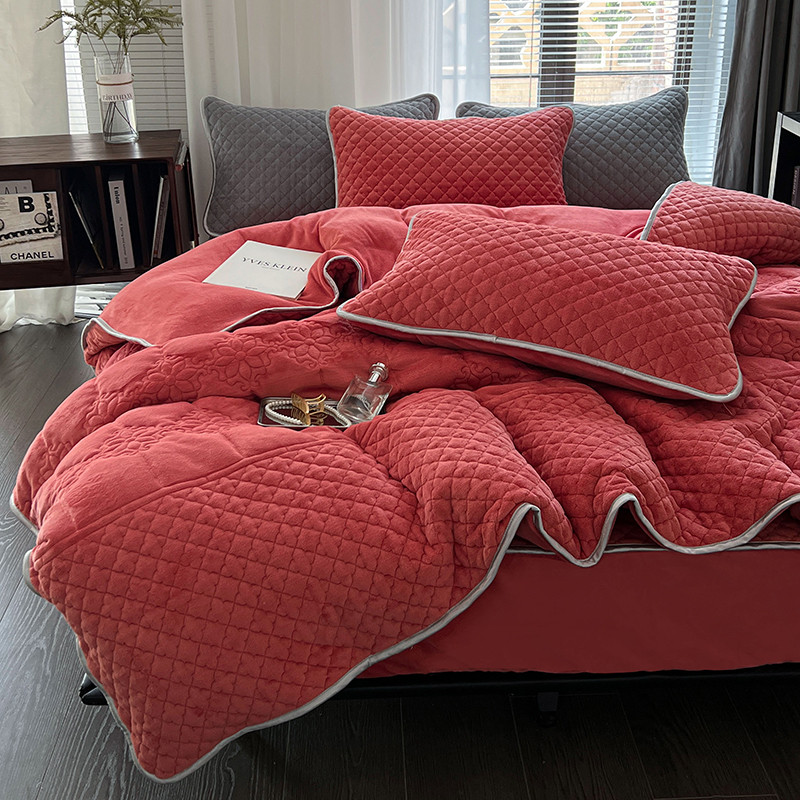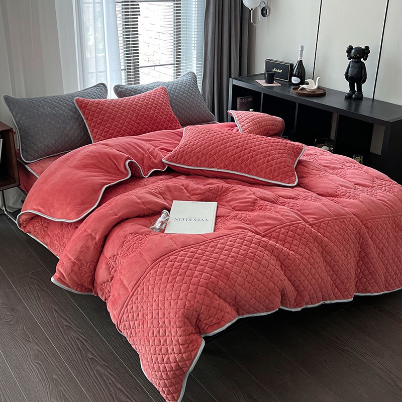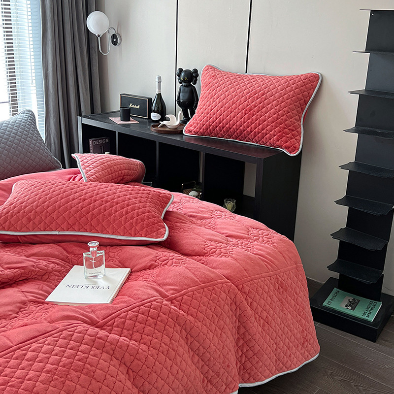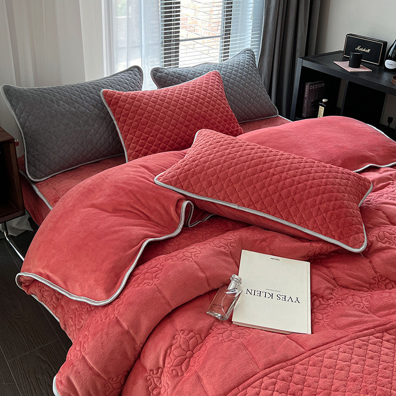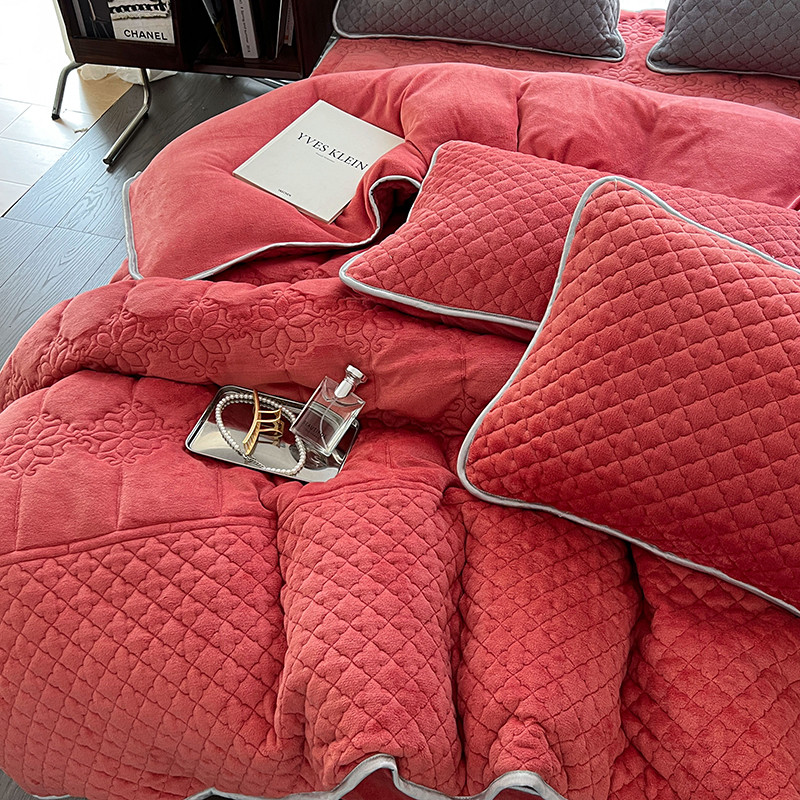 尊康家纺(原磊科) 2024新款加厚牛奶绒包边绗缝款四件套 粉