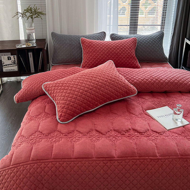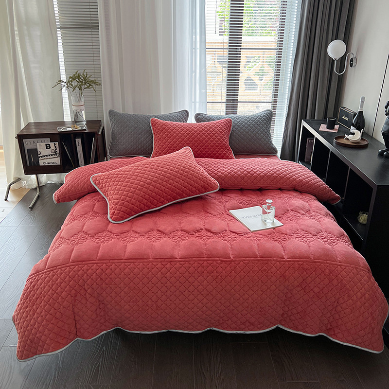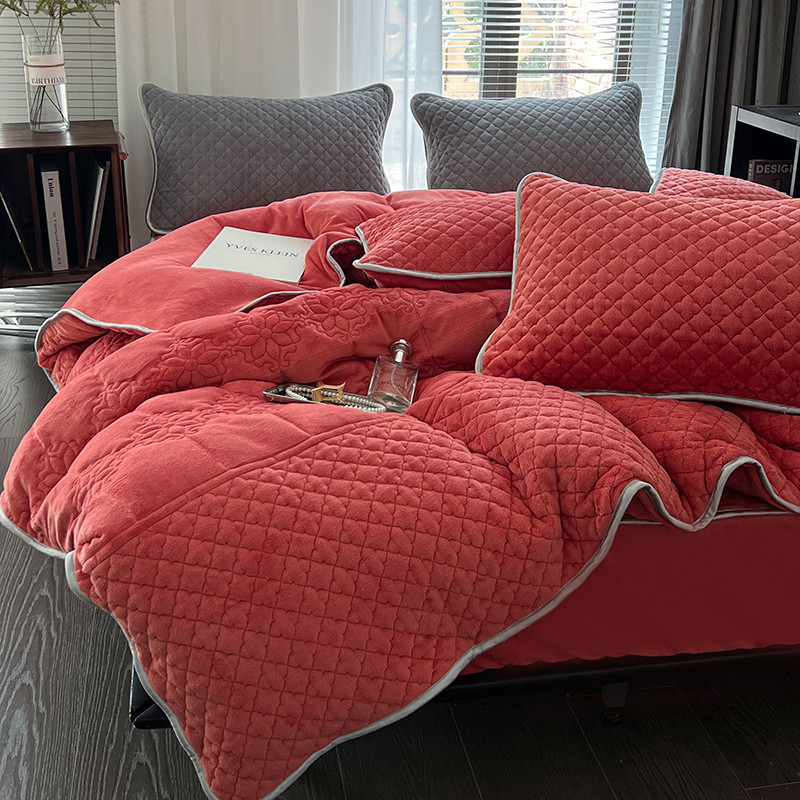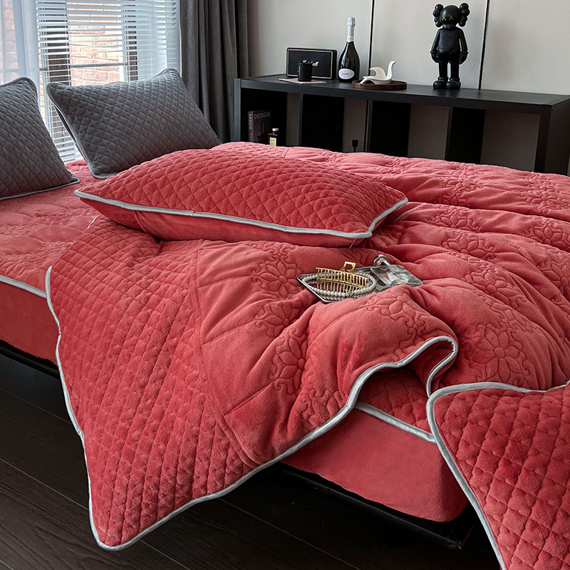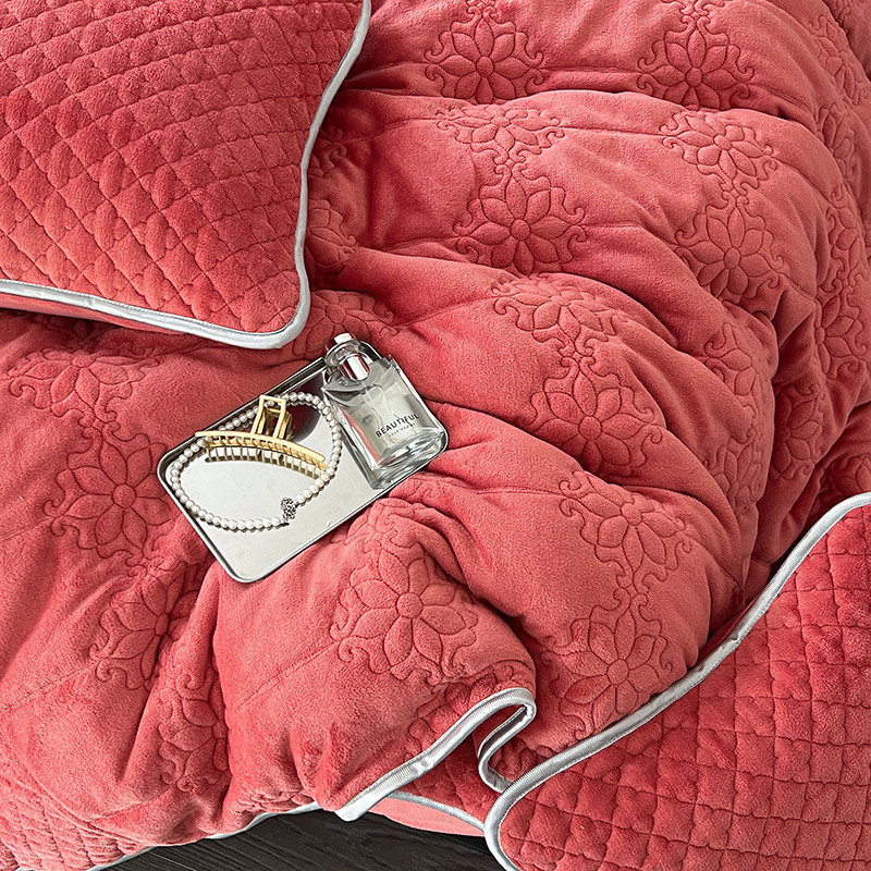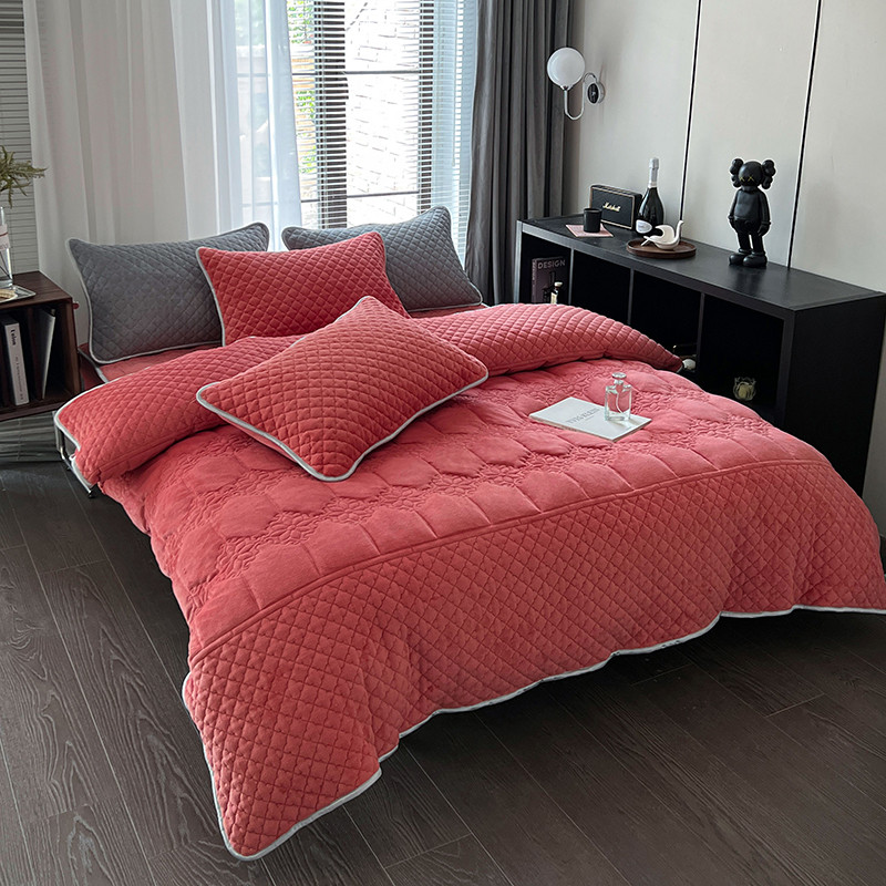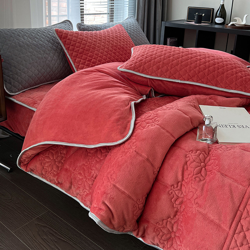 尊康家纺(原磊科) 2024新款加厚牛奶绒包边绗缝款四件套 粉