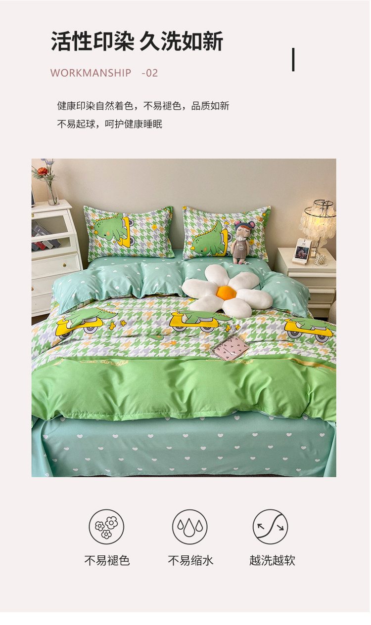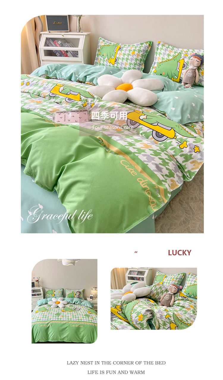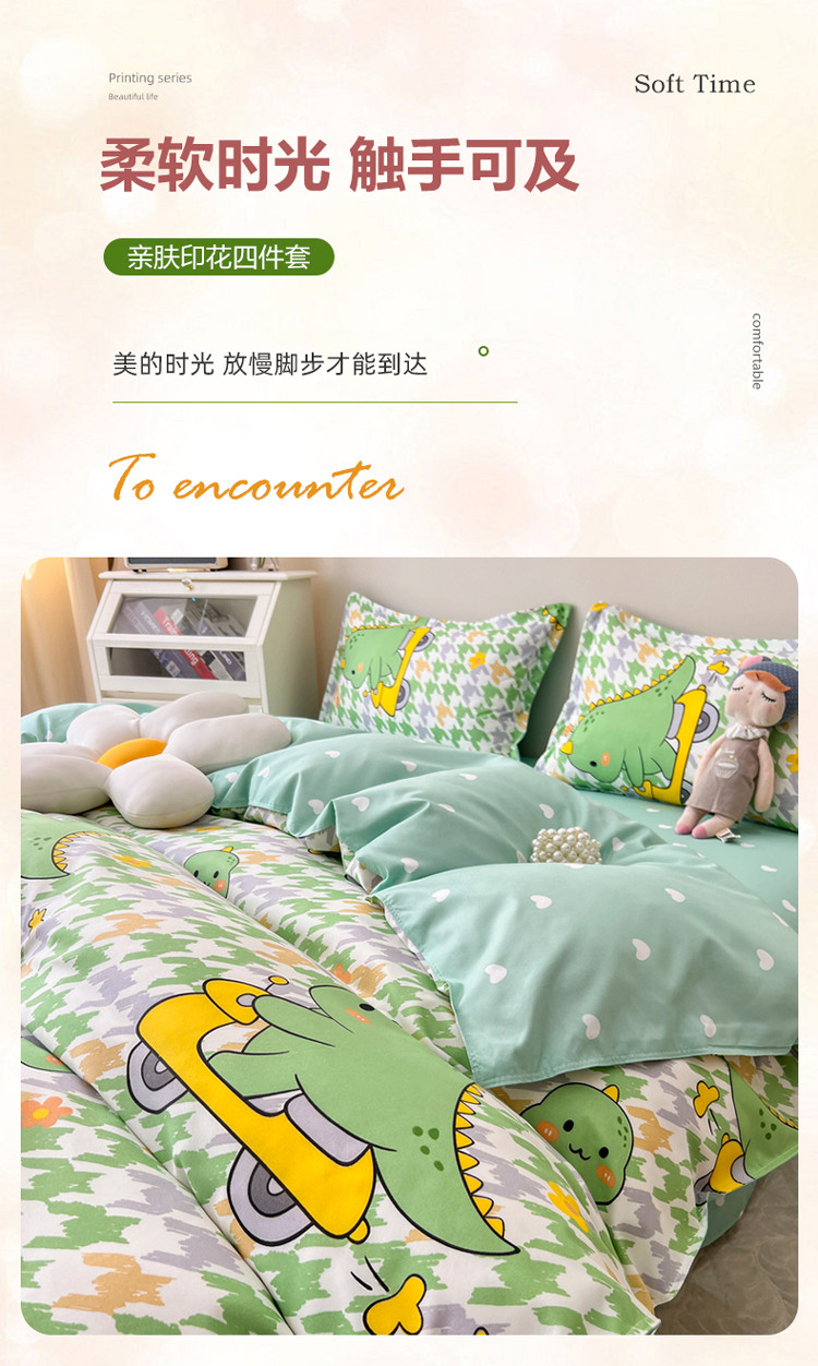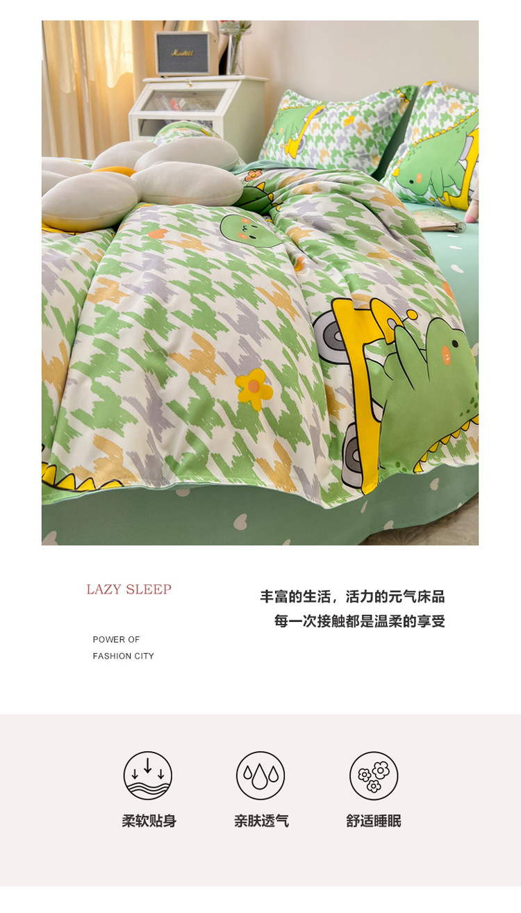 宏源 2022新款芦荟棉亲肤印花四件套10月新花型 奇幻恐龙