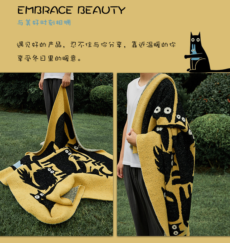 暖绵绵 新款半边绒毛毯-弯月猫系列 弯月猫-捉迷藏