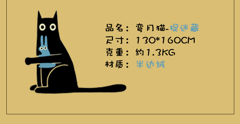 商品名称:暖绵绵 新款半边绒毛毯-弯月猫系列 弯月猫-捉迷藏