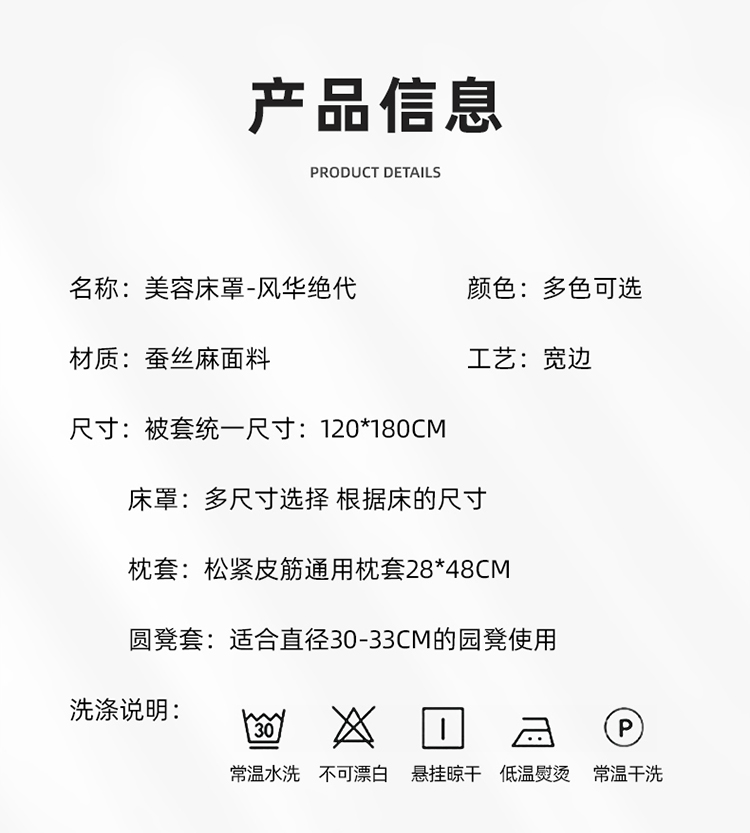 商品名称:(总)不打烊家纺2022新款美容床罩系列套件—风华绝代