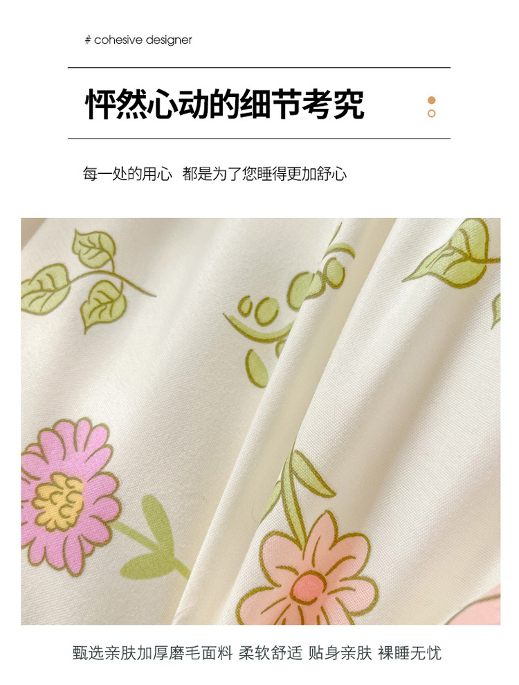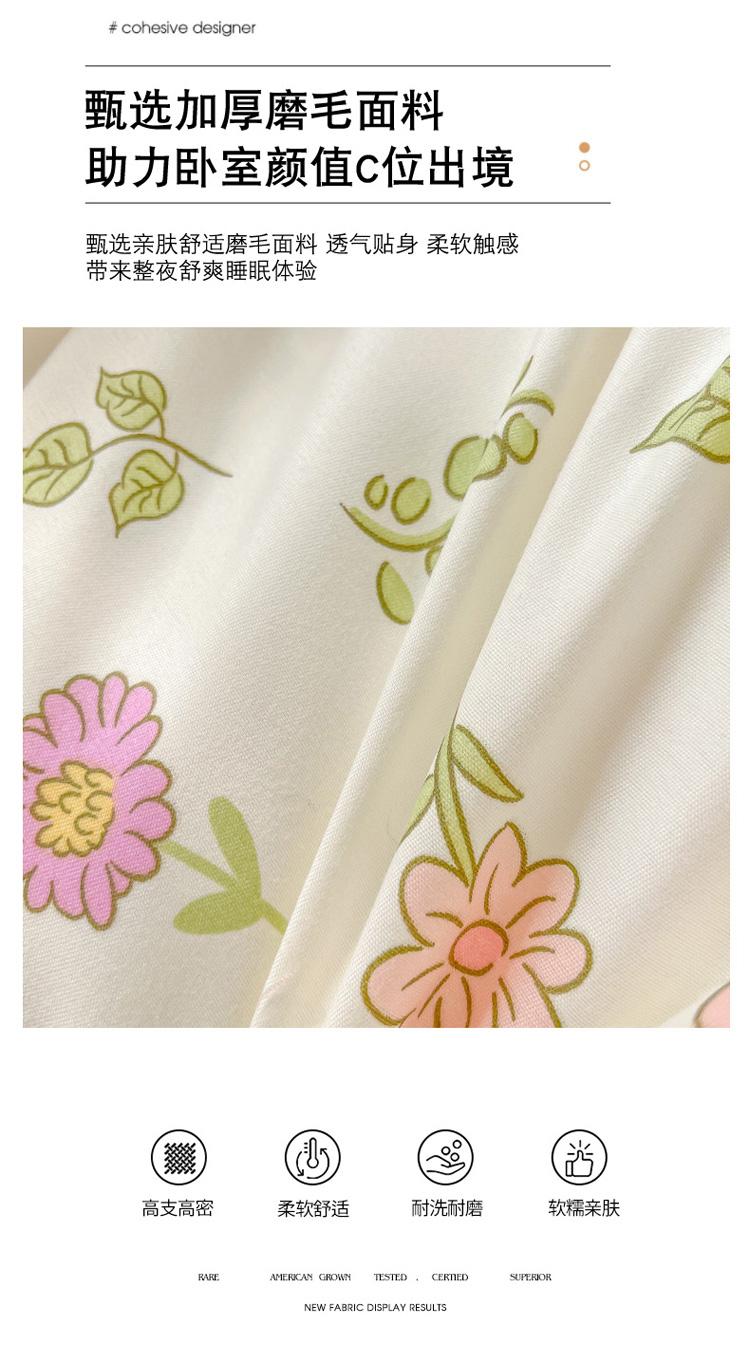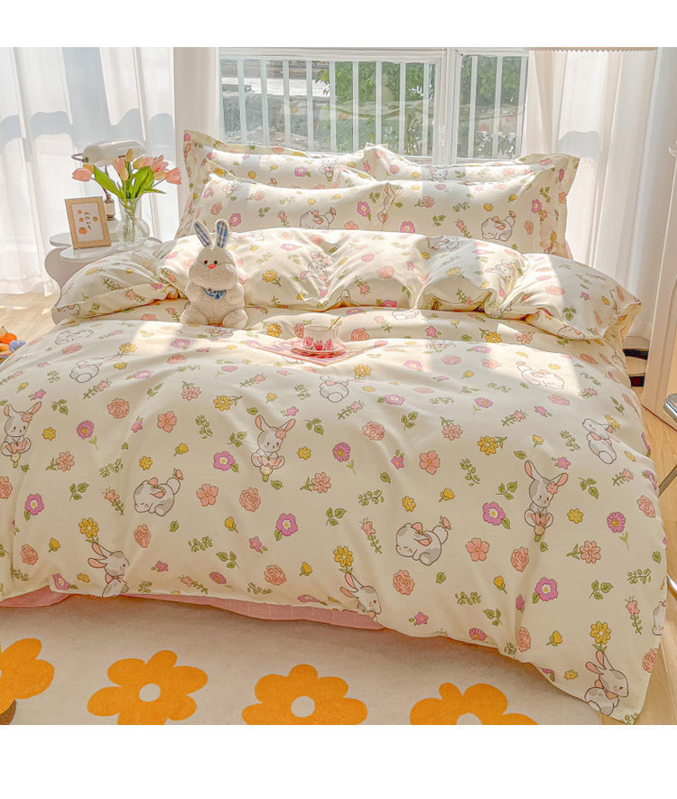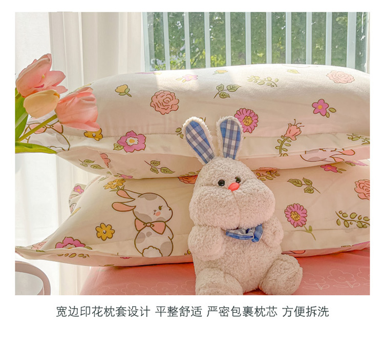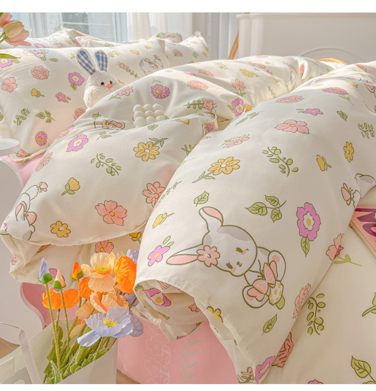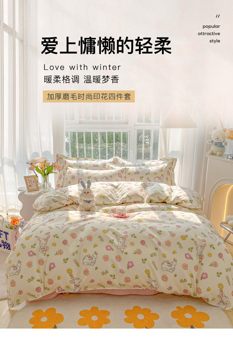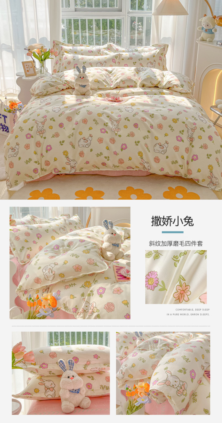 花伞 2022直播网销斜纹加厚磨毛印花植物羊绒四件套撒娇小兔