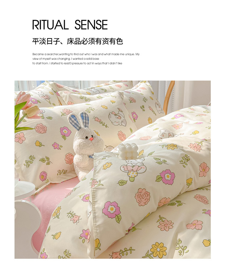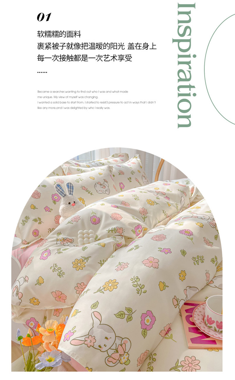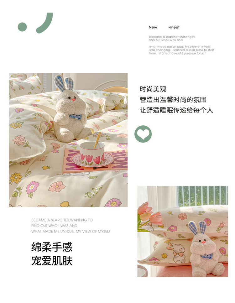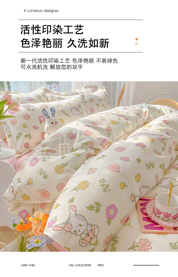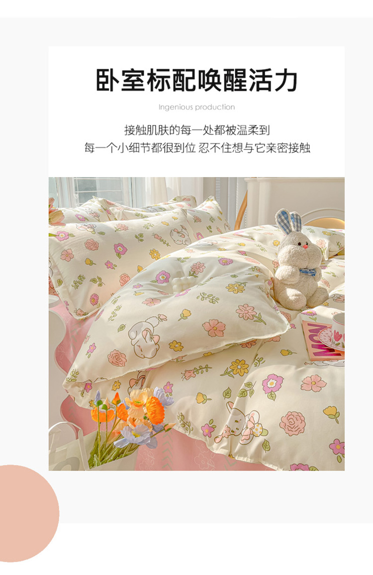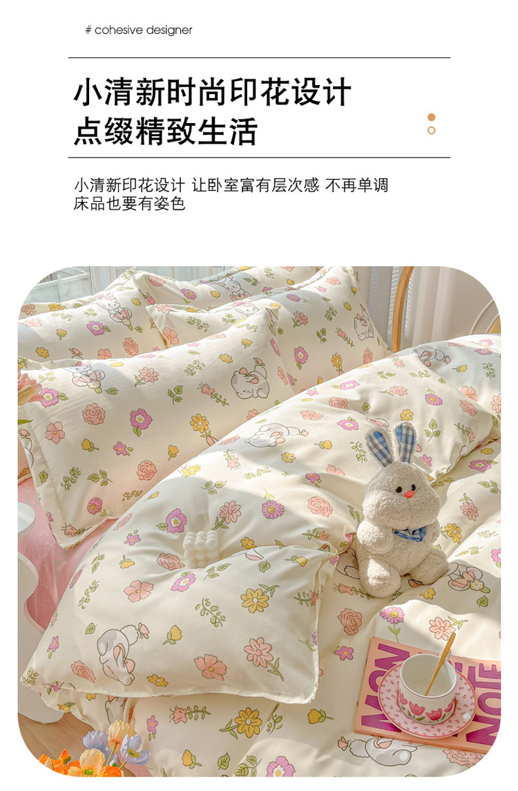商品名称:花伞 2022直播网销斜纹加厚磨毛印花植物羊绒四件套撒娇小兔