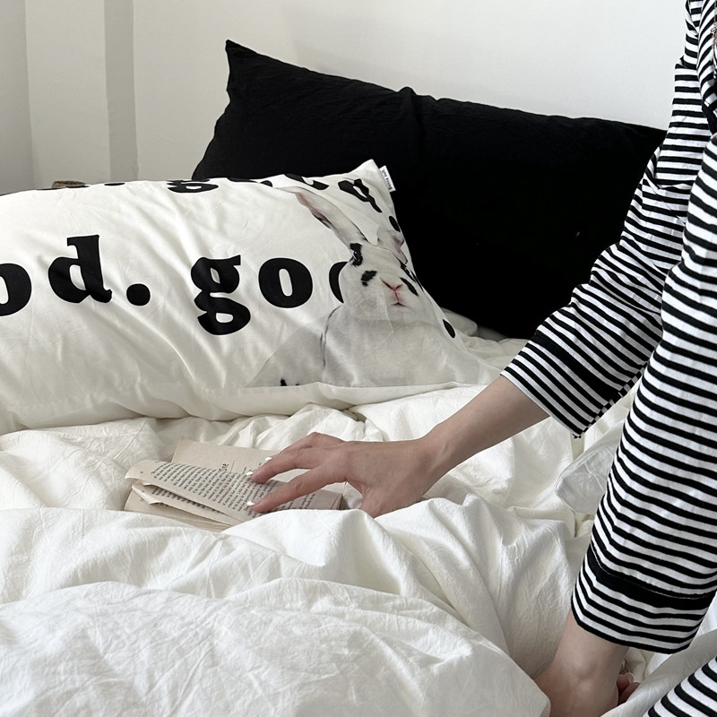(总)恋恋三季 2025新款ins博主简约条纹极简风纯棉单被套,色织水洗-黑白世界,色织水洗-空白格