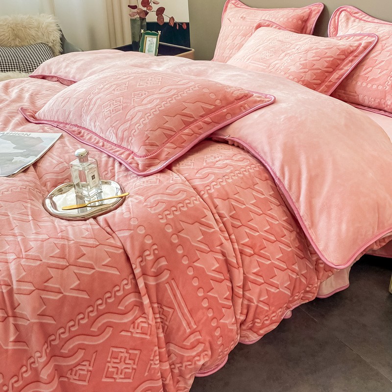 (总)首选家纺 2024新款A类立体雕花绒牛奶绒婴儿绒四件套,蝶影,花语悠然,玫瑰粉,玫瑰桔,玫瑰绿,千叶-粉,千叶-咖,水墨花-绿,水墨画-粉,水墨江南,素色主义,繁花似锦,花间风铃,欧式情怀,纤羽