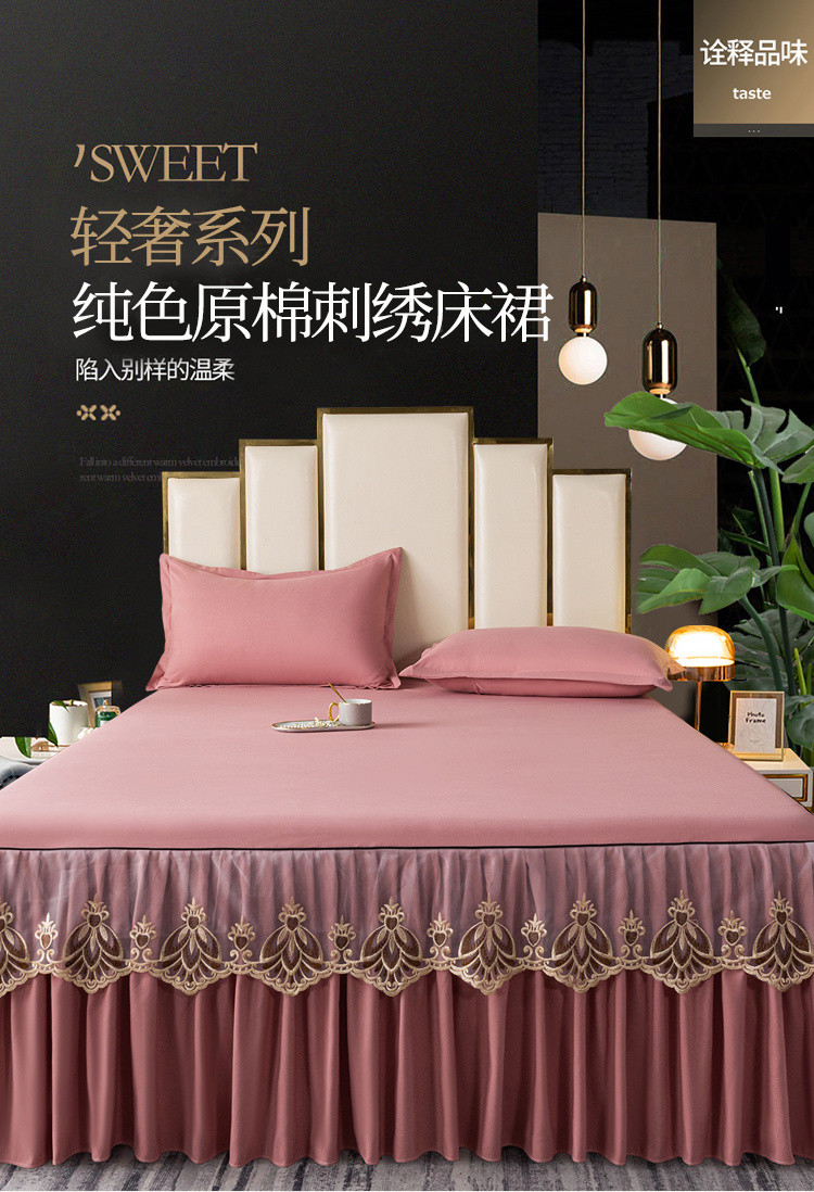 笠裙家纺 2024新款原棉刺绣雅韵风情系列床裙 豆沙雅韵风情