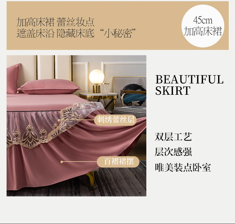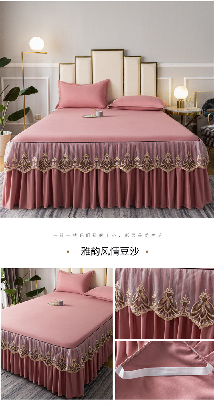 商品名称:笠裙家纺 2024新款原棉刺绣雅韵风情系列床裙 豆沙雅韵风情