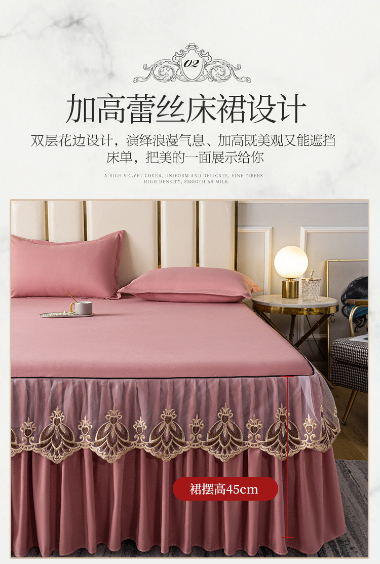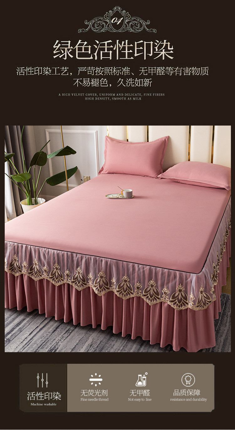 (总)笠裙家纺 2024新款床裙蕾丝刺绣床裙水晶绒夹棉床裙加厚床裙床垫保护罩牛奶绒床垫床单罩,富贵-宝石蓝,富贵-大红,富贵-豆沙,富贵-高级灰,富贵-酒红,富贵-浅粉,富贵-浅紫,富贵-香槟驼