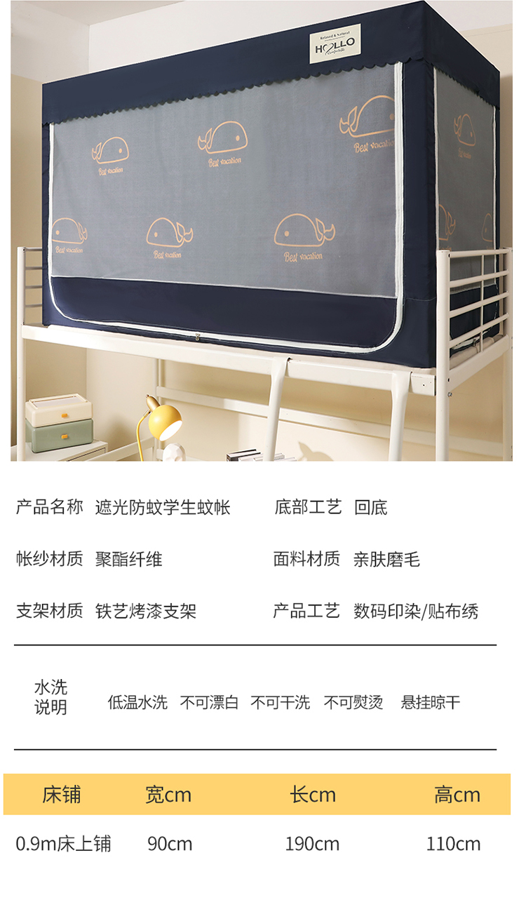 商品名称:世婕 2025新款遮光防蚊学生蚊帐 小鲸鱼