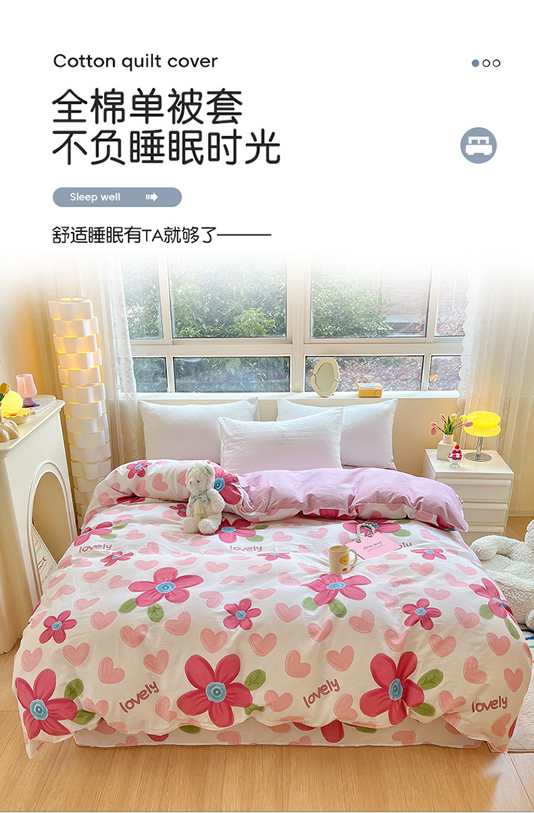 铭成家纺 2024新款全棉小清新系列单被套(预留缩水) 梦入花香-红