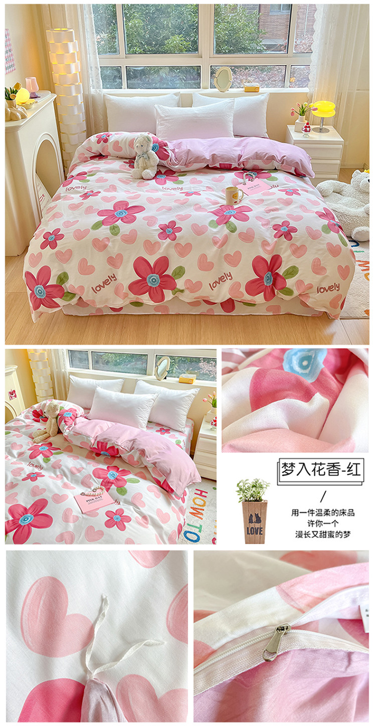 商品名称:铭成家纺 2024新款全棉小清新系列单被套(预留缩水) 梦入花香-红