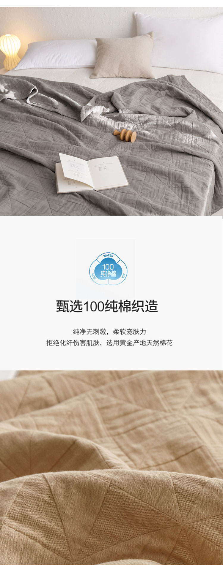 商品名称:朴尔 2023新款纯色四层立体三角树叶水洗全棉纱布系列盖毯毛巾被 提花三角-驼