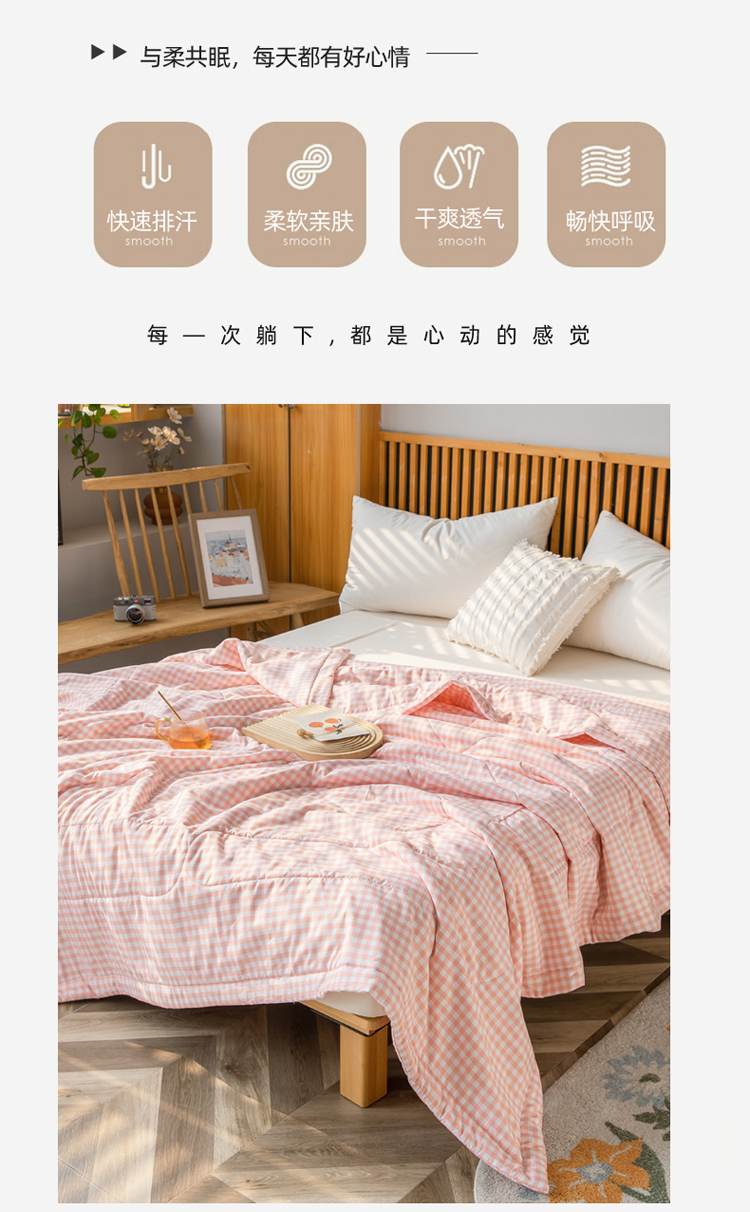 商品名称:久云居 2024新款水洗棉新疆棉花被格纹夏被 粉小格