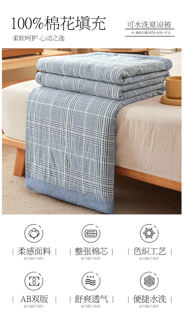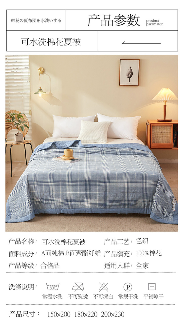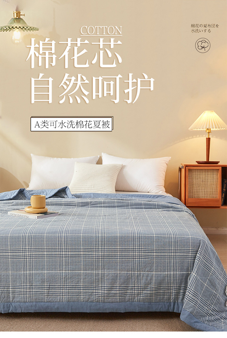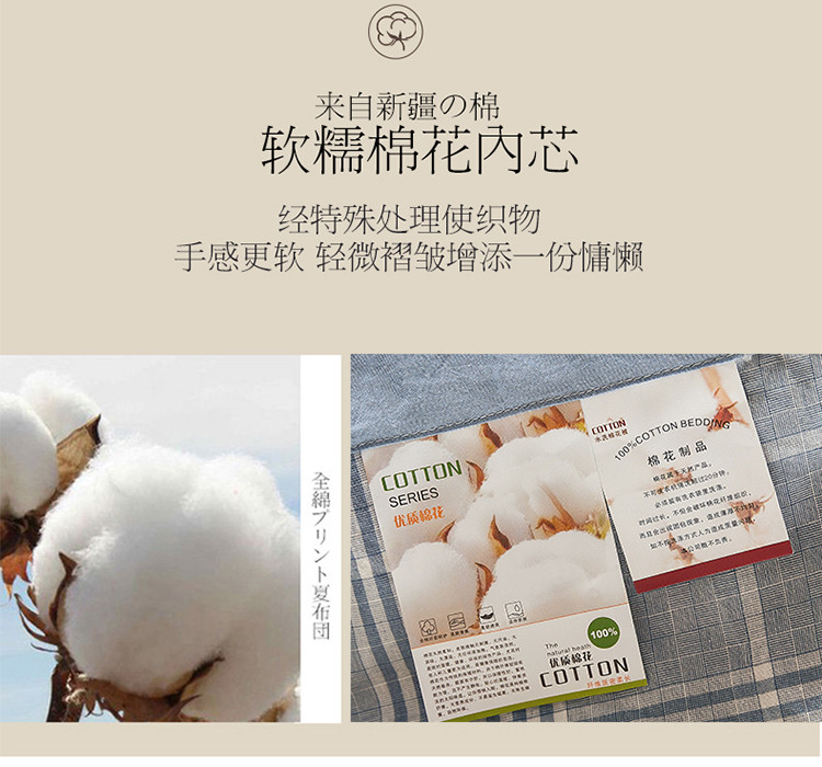 商品名称:悠米悠家 2025新款新疆棉花被棉花夏被水洗棉夏凉被 蓝条格