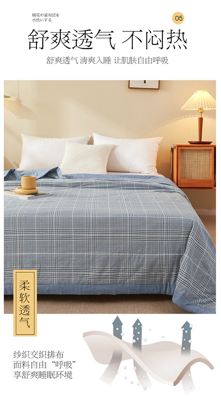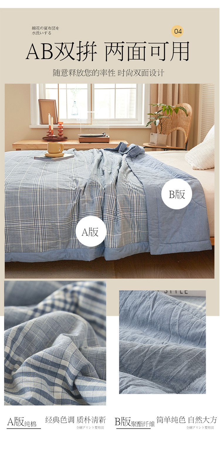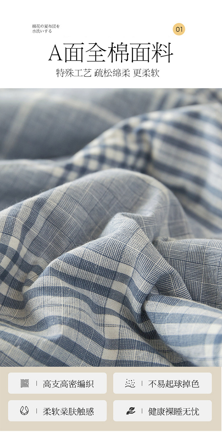 商品名称:悠米悠家 2025新款新疆棉花被棉花夏被水洗棉夏凉被 蓝条格