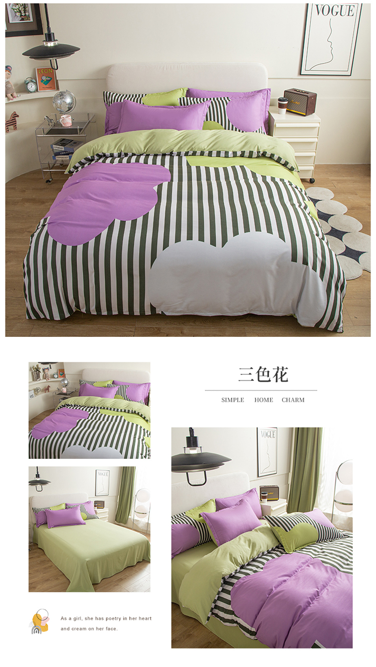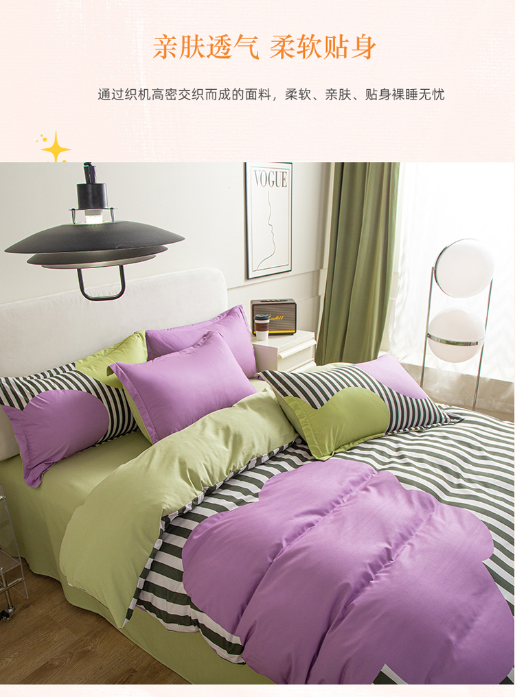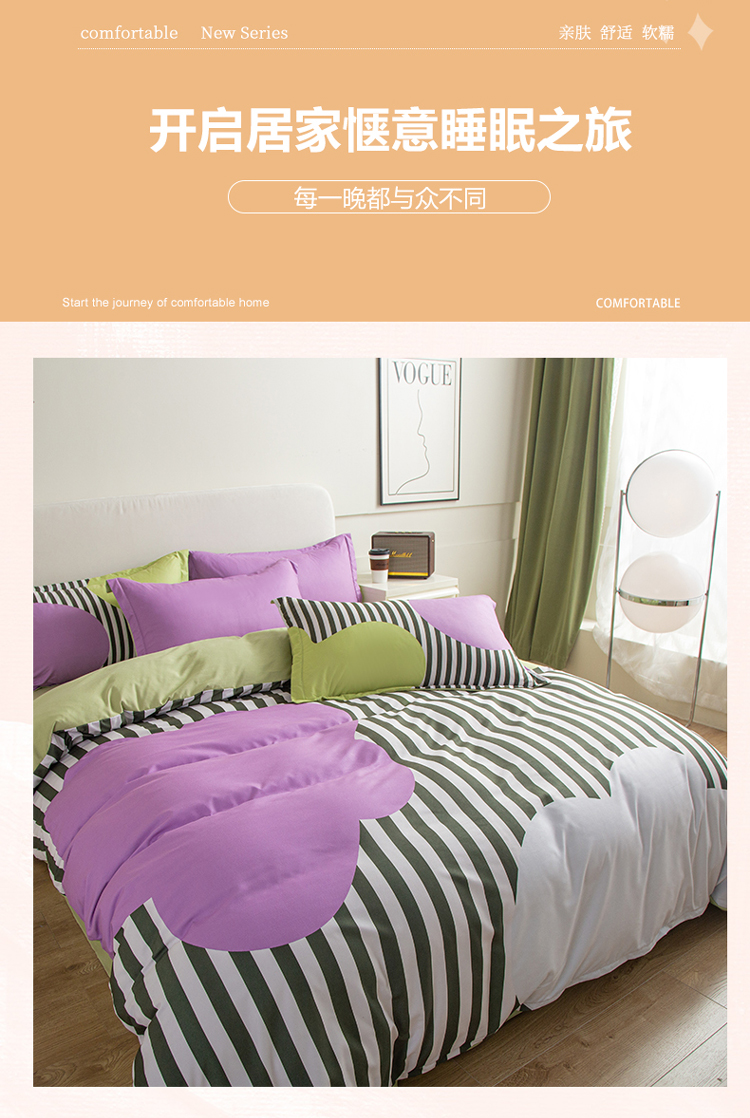 (总)宏源家纺 2023年4月新款芦荟棉亲肤印花四件套,宝藏,星黛兔,格韵,玫红黑条,粉心兔,绿黑条,花园兔