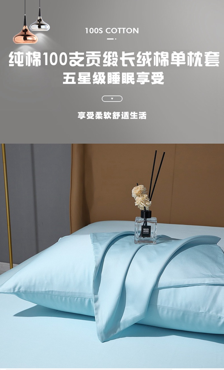 晶缦 2023纯棉50支双股贡缎长绒棉纯色多规格单品枕套 纯沐-浅天蓝