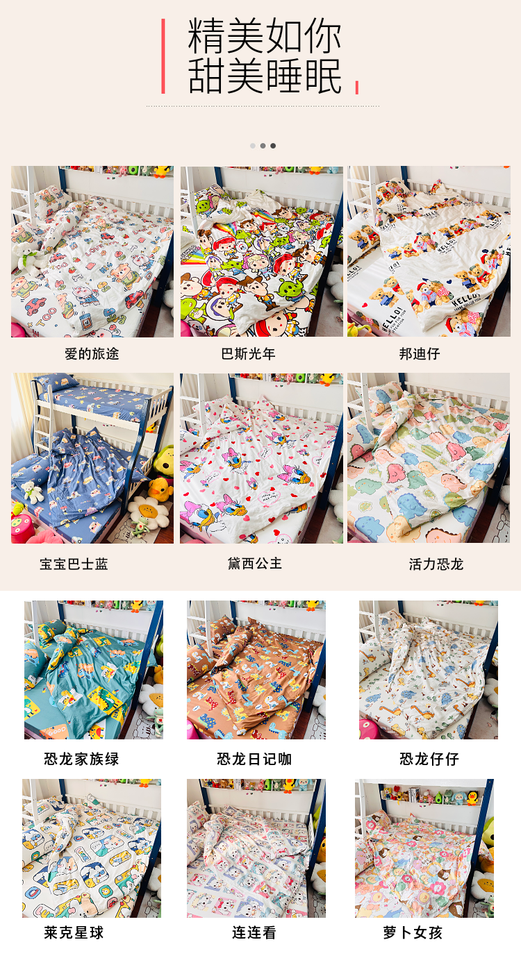 (总)小虾米 2023新款全棉卡通上下床夹棉系列被套,安琪拉,巴斯光年,宝宝巴士蓝,呆小萌,调皮狗,海军鸭,欢乐熊,可爱女孩,恐龙家族绿,千鸟格,探索星球,淘气熊,天真小兔,甜甜的梦粉,小汽车黄,幸运宝贝,熊猫宝贝,宇宙空间站