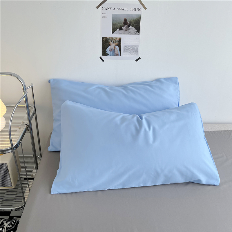 曼璐单人枕套加厚水洗棉日式无印风格子条纹枕芯套48*74cm 浅蓝