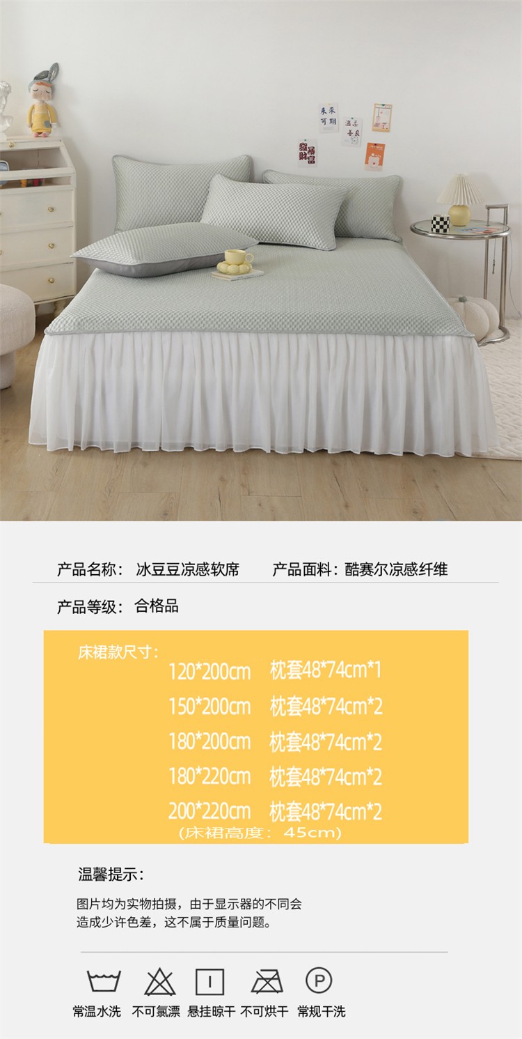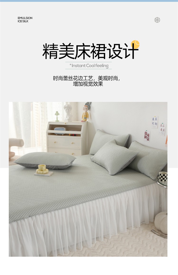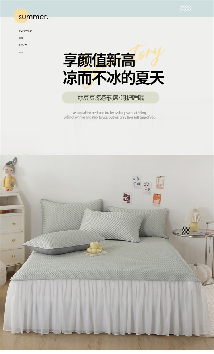 商品名称:能好家纺 2024新款冰豆豆凉感豆豆三件套花边凉席款 雪纺 绿