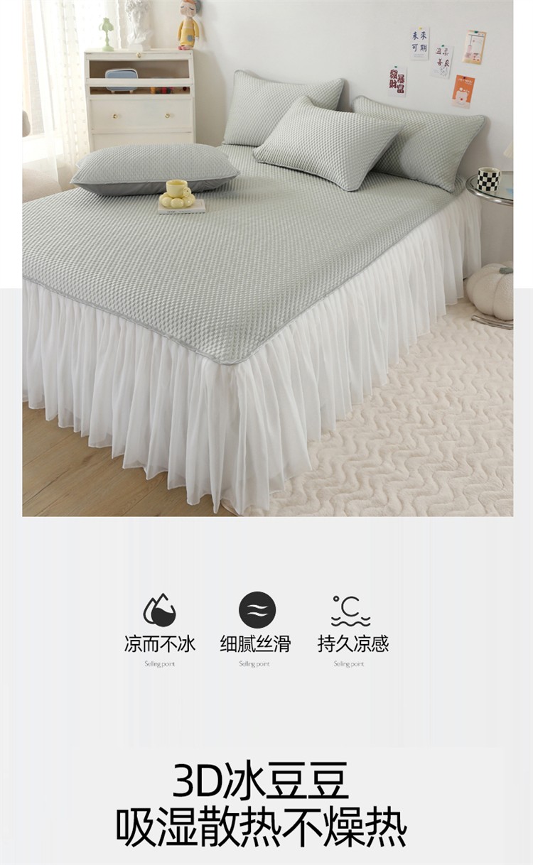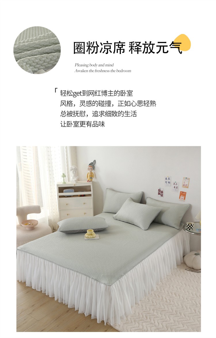 能好家纺 2024新款冰豆豆凉感豆豆三件套花边凉席款 雪纺 绿