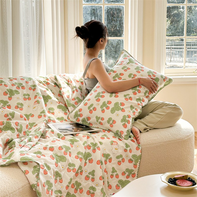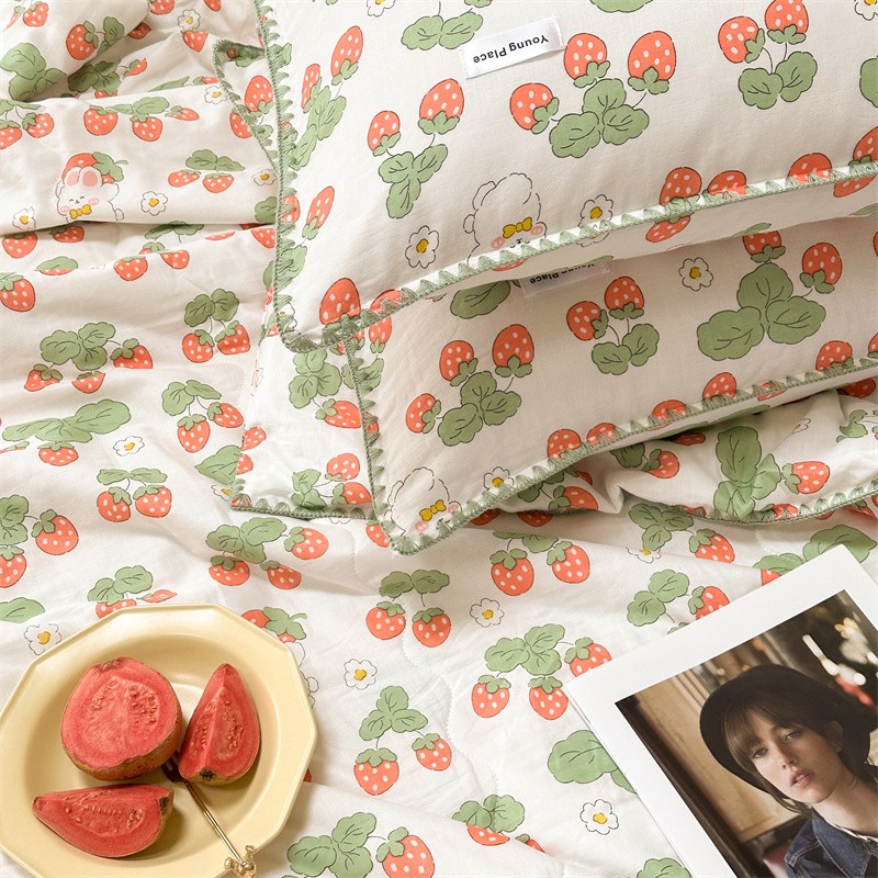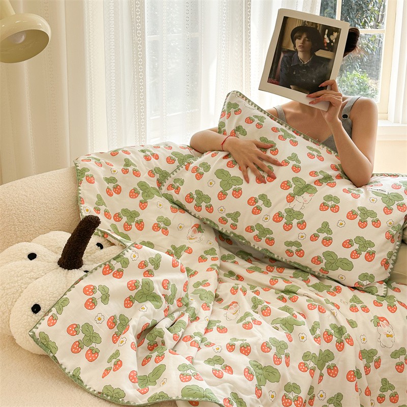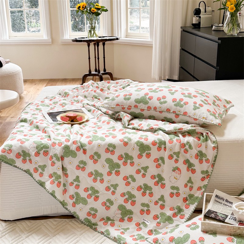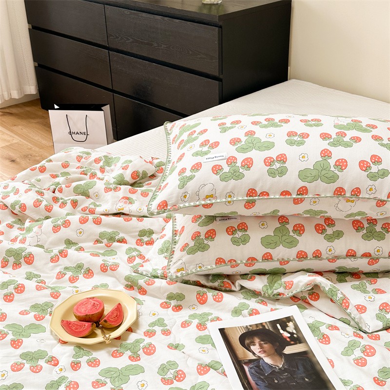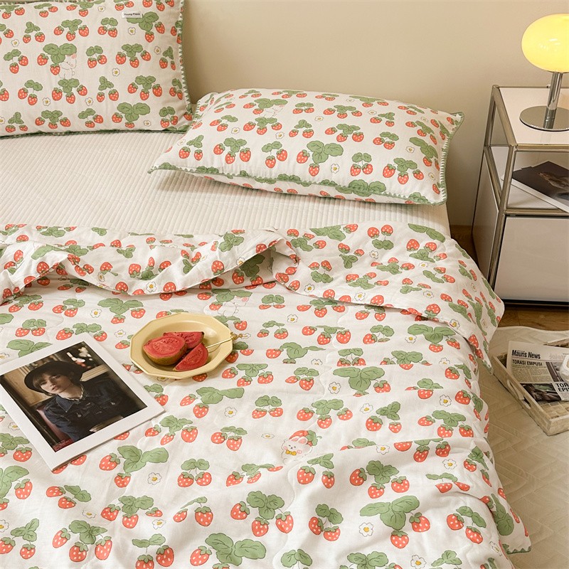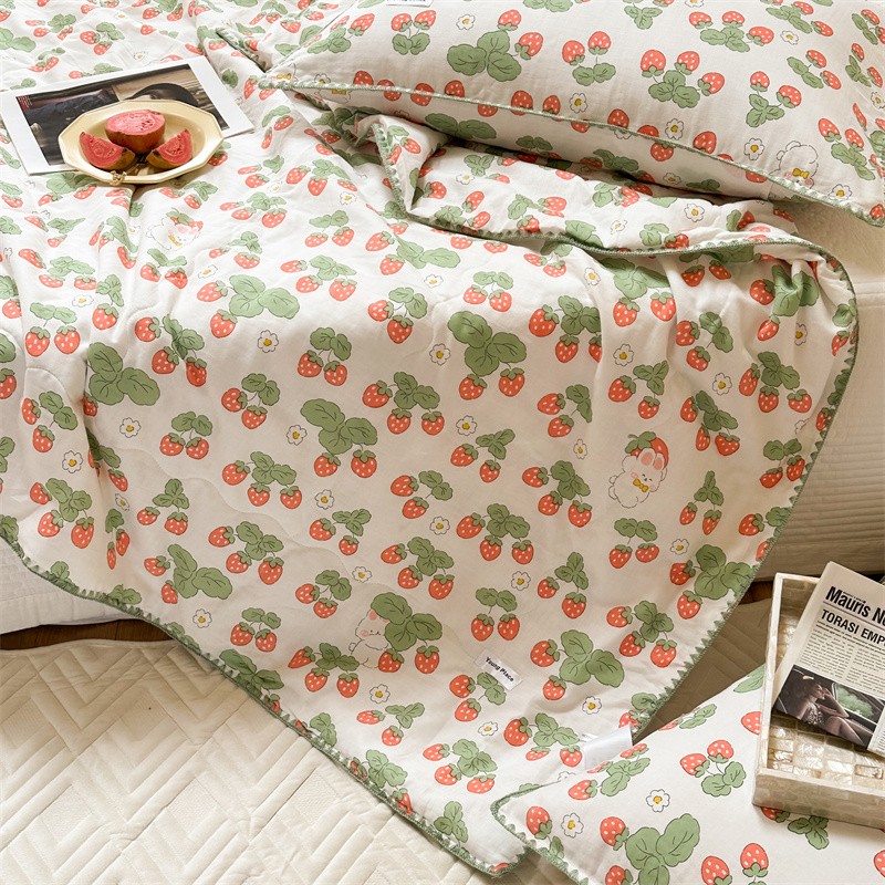 (总)洋铭区 2023新款全棉皱皱双层纱夏被,粉色郁金香,甜萝卜,旺旺熊,微笑,香甜草莓,小花仙,小鸭鸭