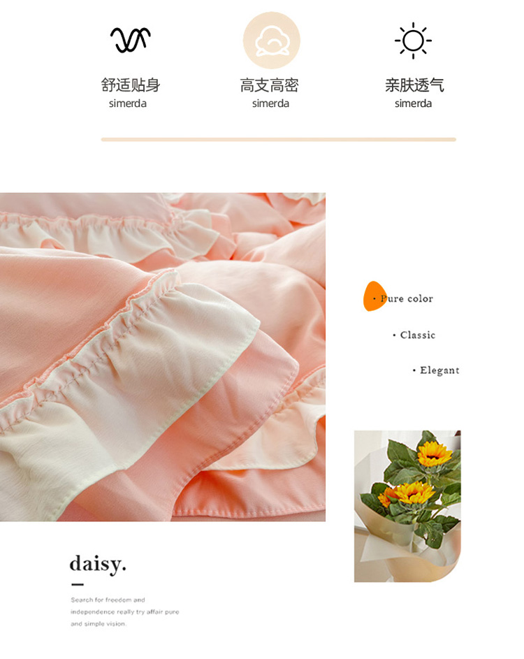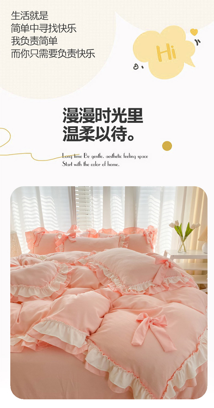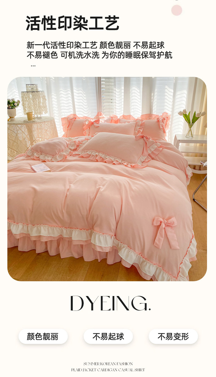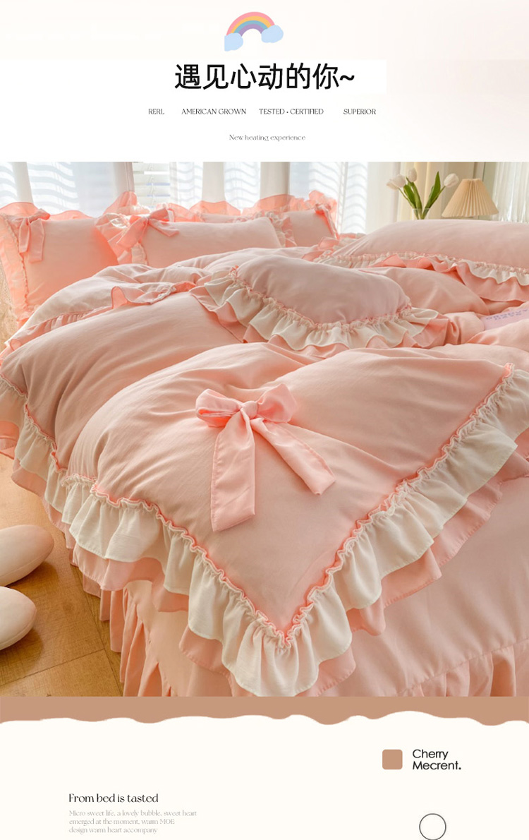 (总)唐人居 2026新款水洗棉花边床盖四件套-花影系列,花影-浅紫,花影-豆沙,花影-玫红,花影-暖橘,花影-苹果绿,花影-浅粉,花影-浅灰